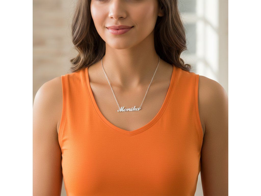 Řetízek z oceli se jménem Monika stříbrný + dárkové balení