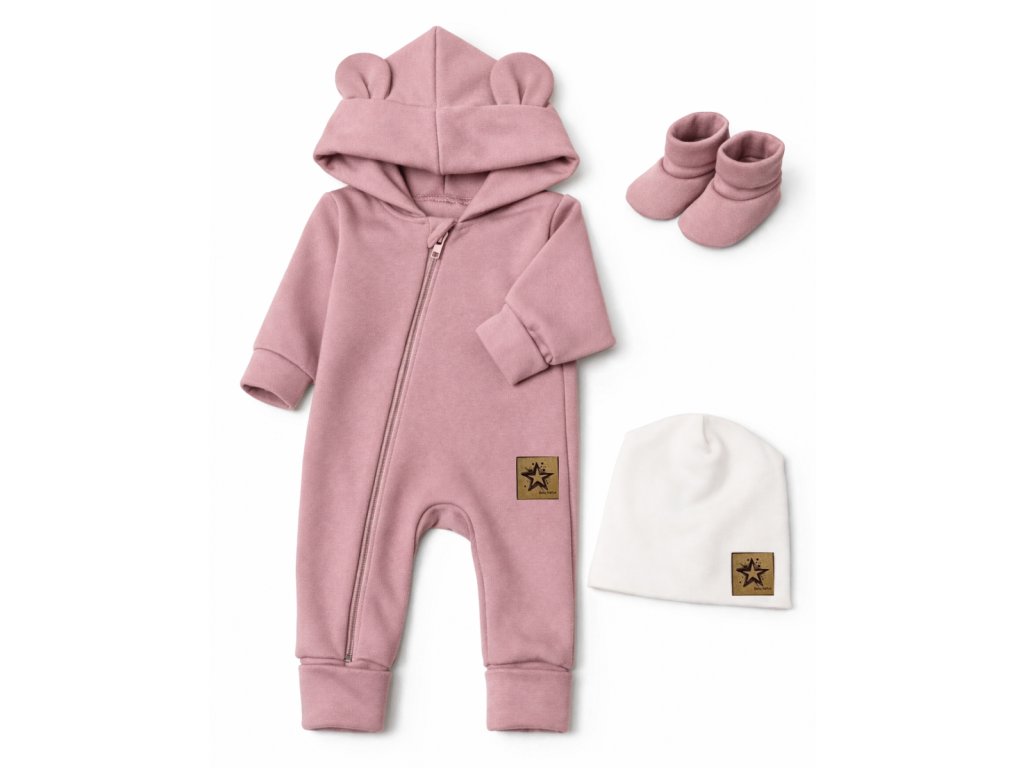 Rostoucí oteplený overál s čepičkou a botičkami, 3D - pudrově růžová