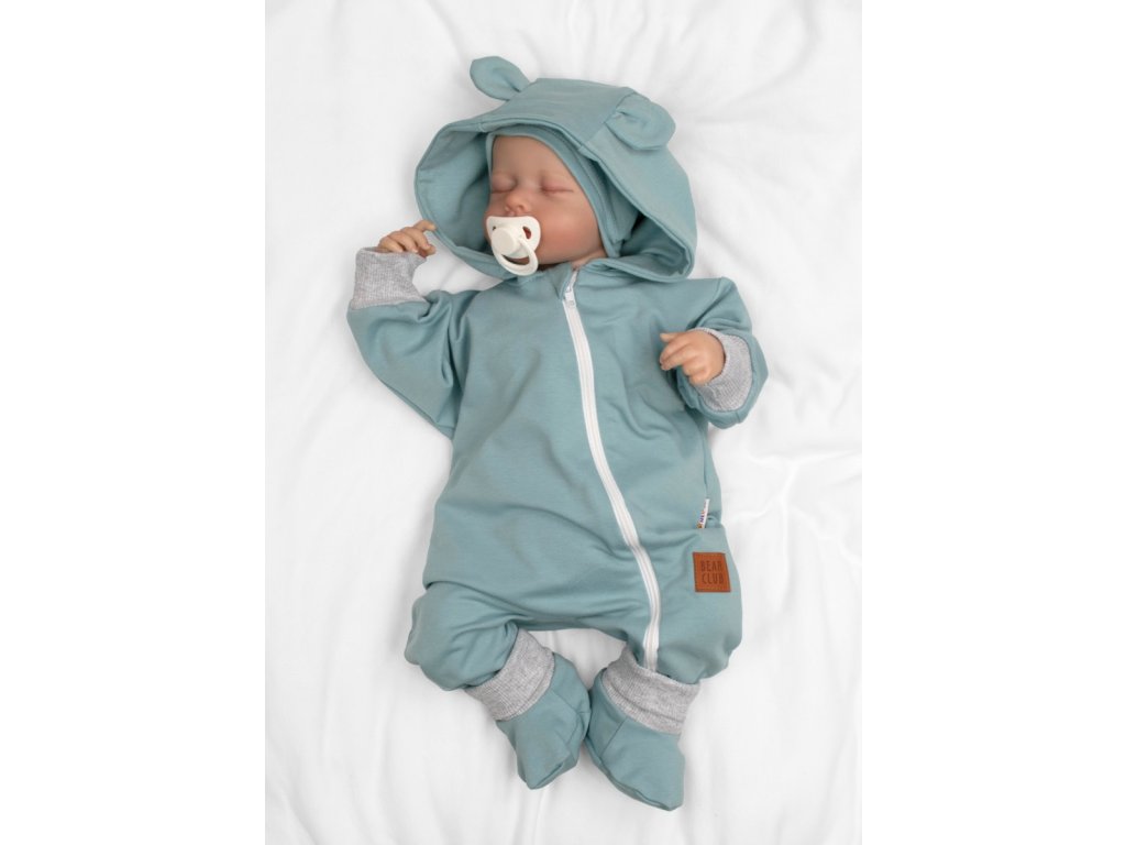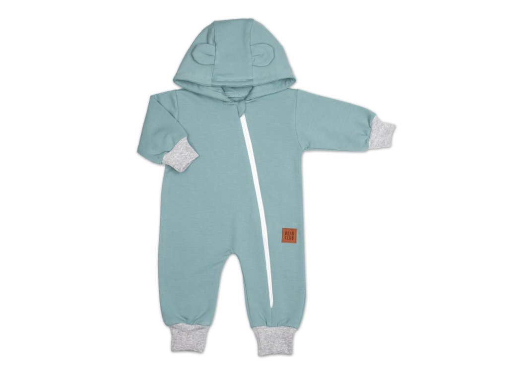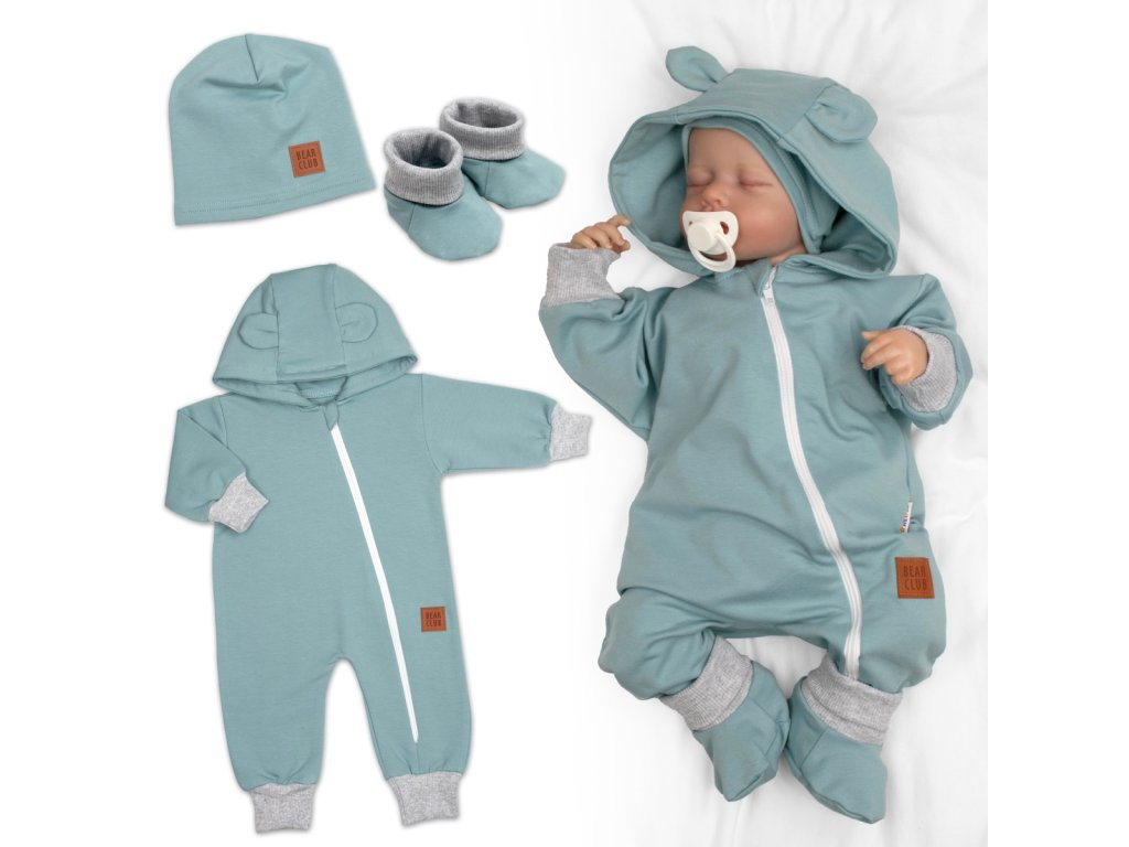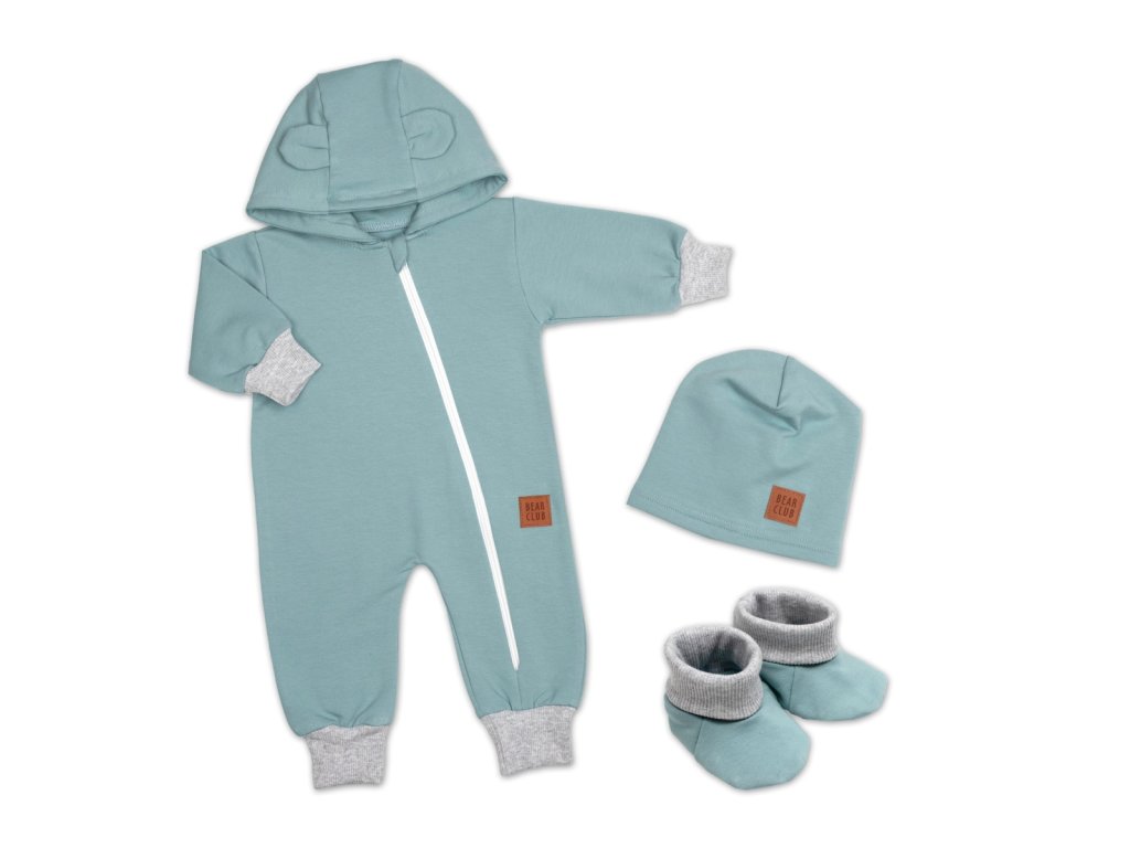 Rostoucí teplákový overal pro miminko, čepice, botky, 3D, Nature - ledová máta, šedá