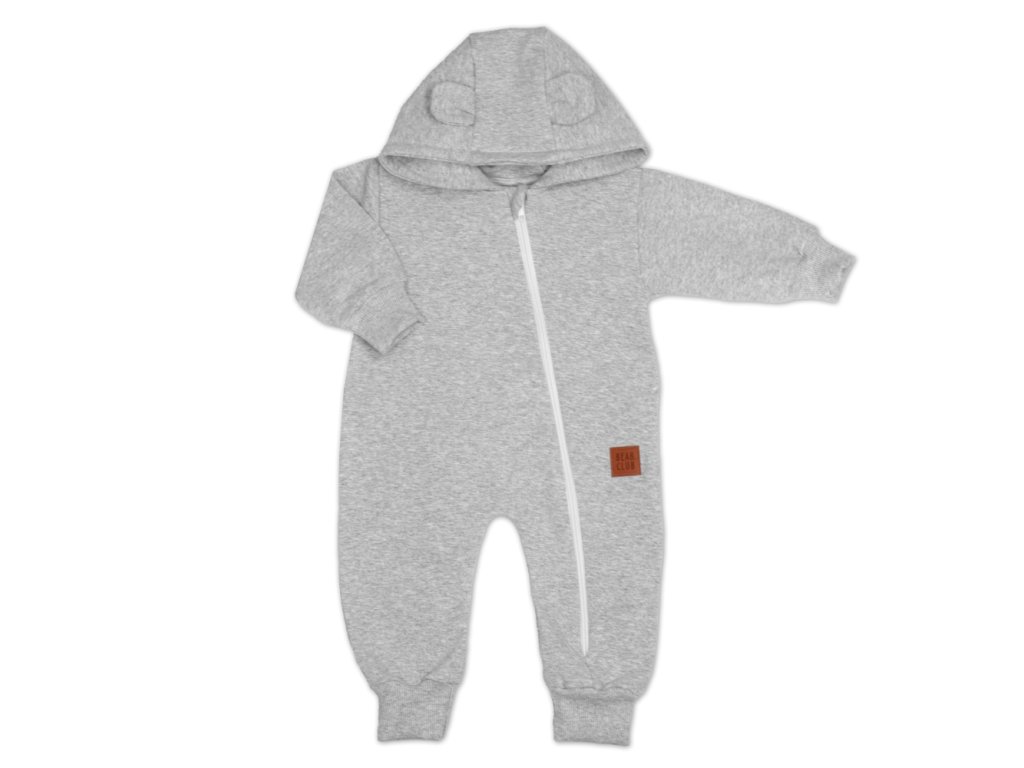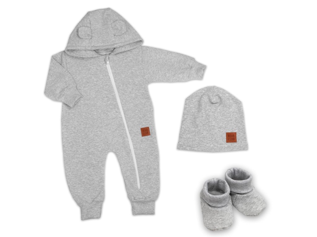 Rostoucí teplákový overal pro miminko, čepice, botky, 3D, Nature - šedý melír