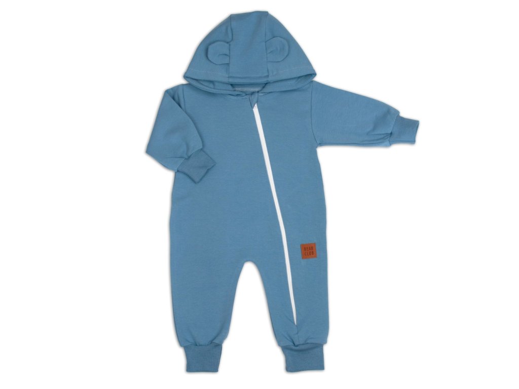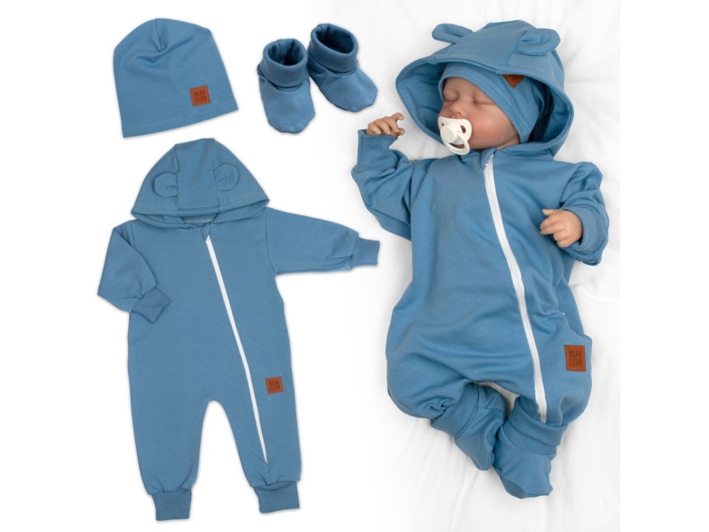 Rostoucí teplákový overal pro miminko, čepice, botky, 3D, Nature - tm. modrý