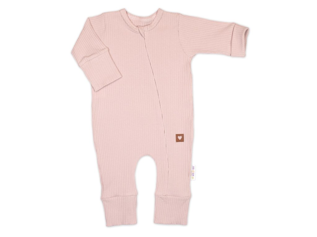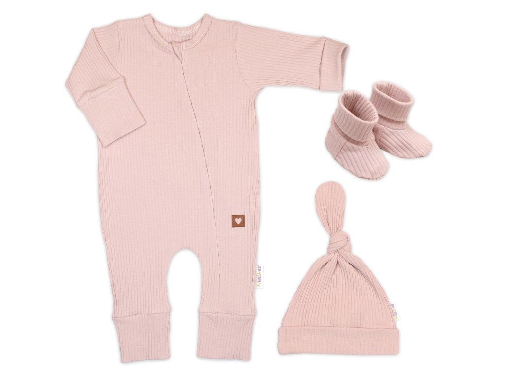 Rostoucí žebrovaný overálek, čepička a botičky, 3D, Nature - pudrově růžová