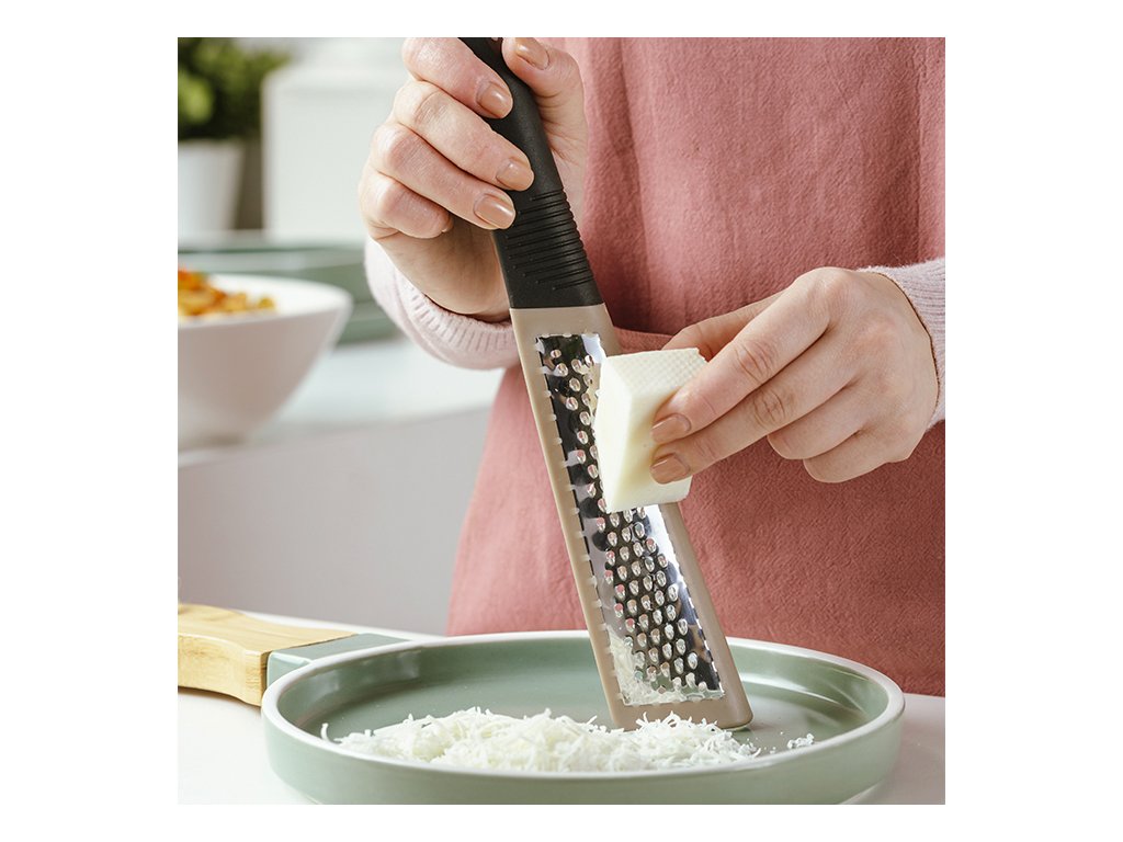 Nerezové struhadlo Misty od NAVA je nezbytným nástrojem téměř ve všech receptech na vaření, ale i v cukrářských receptech, protože pokrývá širokou škálu potřeb při přípravě pokrmů, ať už během samotného vaření nebo při zdobení pokrmu. Čepele z nerezové oceli , vhodné pro kontakt s potravinami, s pevným šedým plastovým rámem a ergonomickou protiskluzovou rukojetí soft touch pro stabilní a bezpečnou manipulaci. V elegantním, zaobleném designu a praktické velikosti pro snadné skladování. Má dva povrchy, pro hrubé nebo jemné strouhání , zatímco praktický otvor na okraji umožňuje jeho zavěšení.