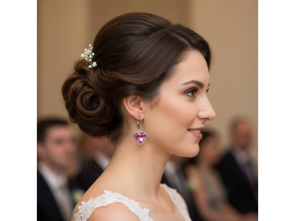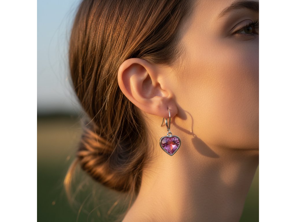 Růžové náušnice srdíčko z chirurgické oceli SD752 + dárkové balení