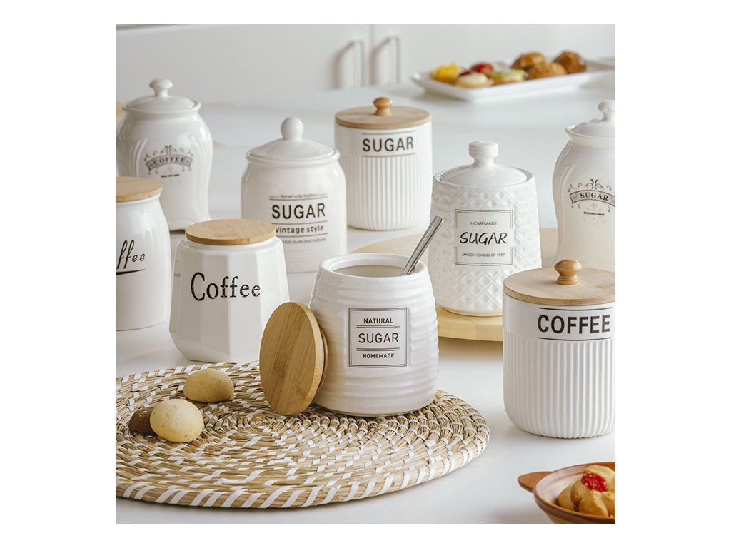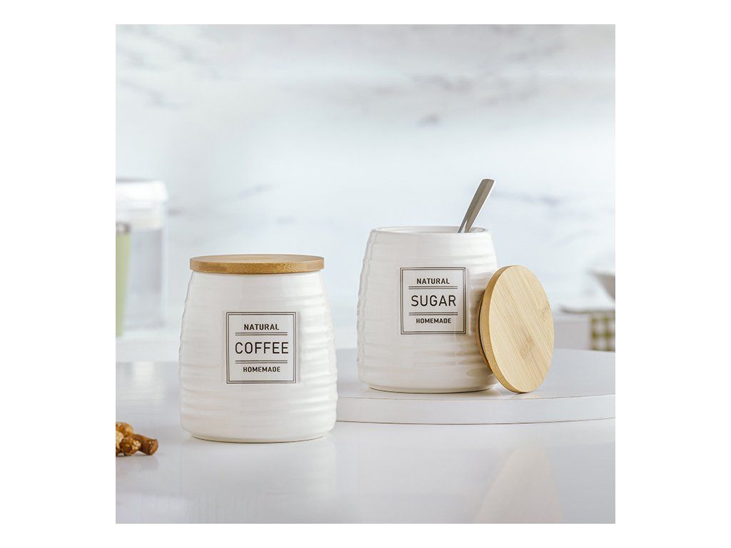 - Stylová organizace: Sada obsahuje dvě dózy s přehledným označením pro kávu a cukr, takže budete mít své ranní nezbytnosti vždy po ruce a stylově uložené.