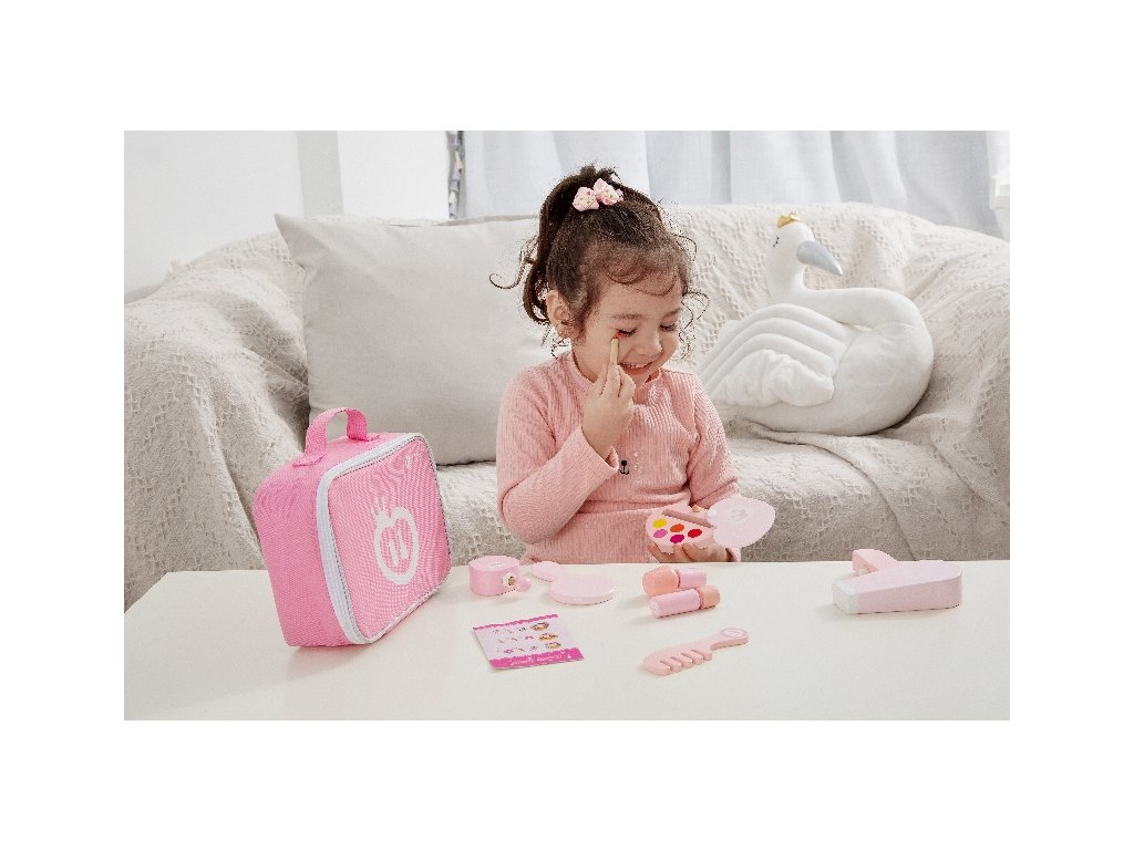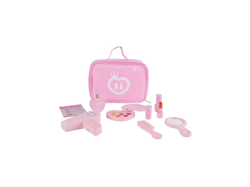 Sada make-up s příslušenstvím. S touto dřevěnou make-up sadou máte vždy vše po ruce, abyste byla krásná. Sada obsahuje zrcátko, oční stíny, hřeben na vlasy, vysoušeč vlasů, lahvičku s parfémem, rtěnku a lak na nehty. Věci se snadno nosí ve veselé růžové tašce. Upozornění ! V případě, že u zboží svítí skladem v externím skladu - je dodání zboží mezi 3 - 7prac. dny. Děkujeme za pochopení.Doplňkové parametry