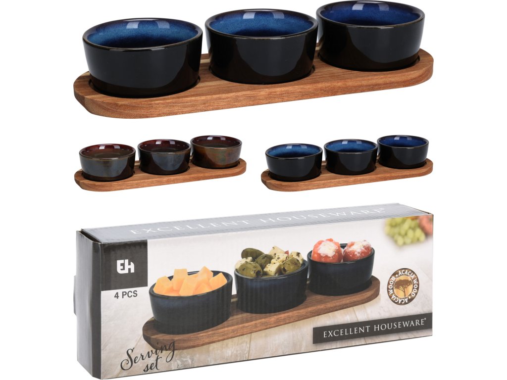 Sada servírovacích misek EXCELLENT s dřevěným podstavcem