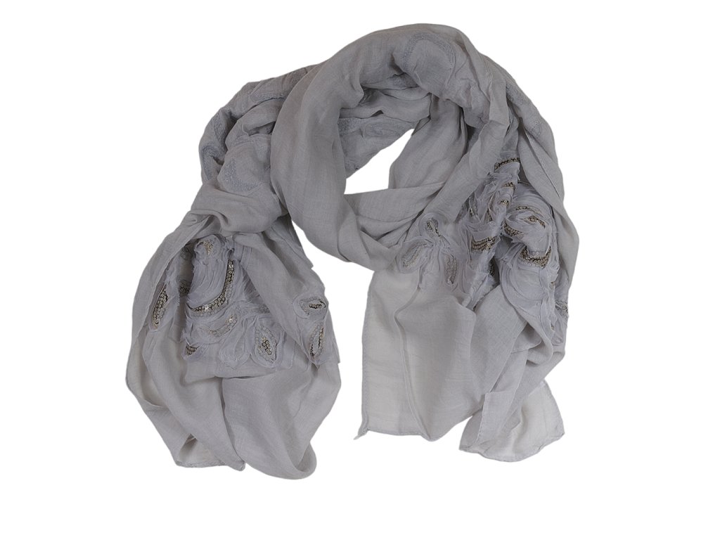 Šátek s květy 180 x 70 cm 85% bavlna barva šedá