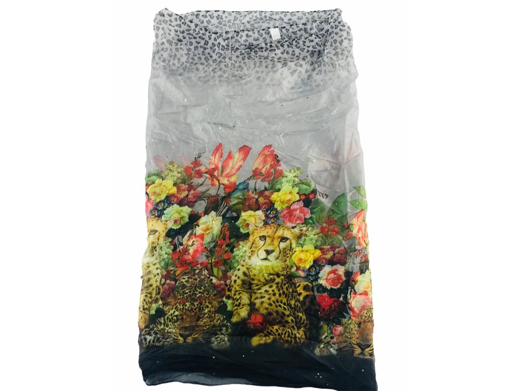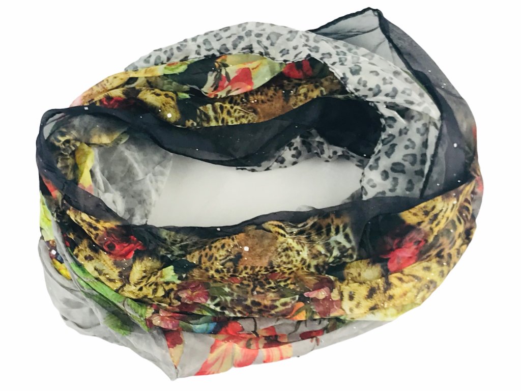 Jemný šátek s příjemného materialu s moderním tiskem Vás příjemně zahřeje v chladném ránu a ochráni před větrem.Tunel můžete dát ležérně kolem krku ,vytvořit kuklu a pokud se oteplí uvážete tunel na svou kabelku a opět budete nepřehlédnutelná.