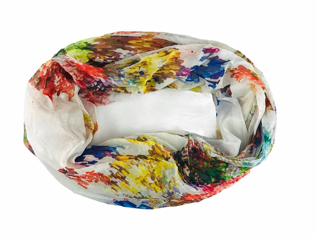 Jemný šátek s příjemného materialu s moderním tiskem Vás příjemně zahřeje v chladném ránu a ochráni před větrem.