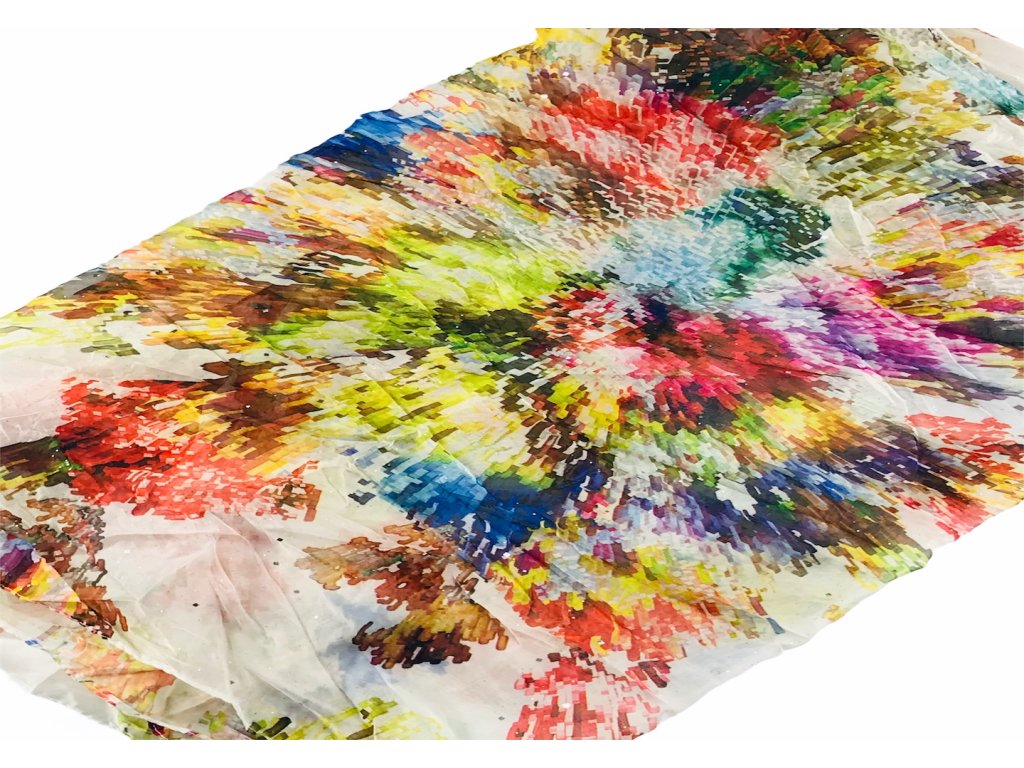 - v šátku jsou zakomponovány drobné třpitivé kamínky