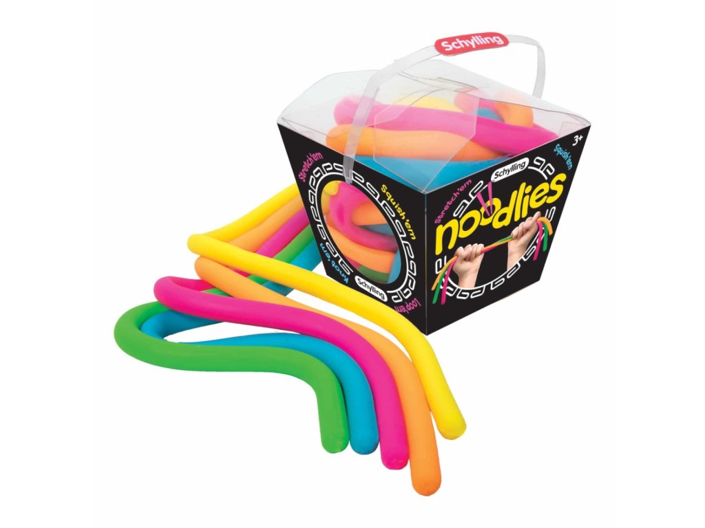 NeeDoh Noodlies - to je pestrobarevná zábavná hračka pro hraní bez nepořádku. Neonově zelené, modré, růžové a oranžové natahovací nudle můžete mačkat, natahovat nebo zauzlovat tak, jak se Vám líbí a vždy se vrátí zpět do původního tvaru. Nudle nabízejí jedinečný zážitek z nekonečné zábavy při hraní. Jsou skvělým dárkem a jsou také ideální pro školy, párty i osoby se speciálními potřebami. Nudle jsou vyrobeny z netoxického materiálů připomínající těsto. Ideální hračka na cesty pro neposedné děti. Nudle mohou sloužit také jako prostředek k úlevě od úzkosti. Hlavní vlastnosti: obsahuje 5 barev ve fluorescenčních tónechvhodná antistresová hračkaideální na cestypodporuje soustředěnost a pozornostDoplňkové parametry