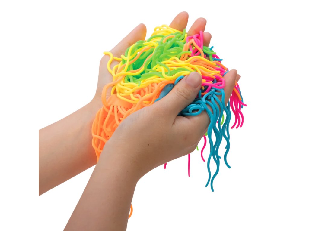 Natahovací nudle naplňují zábavu při hraní si s jídlem...bez nepořádku. Můžete je mačkat, natahovat, zauzlovat tak, jak se Vám líbí. Nudle jsou jasně zbarvené v 5 fluorescenčních tónech a nabízejí jedinečný zážitek ze smyslové hry, který vytváří spoustu nekonečné zábavy. NeeDoh Noodlies jsou skvělým dárkem a jsou také ideální pro školy, párty, osoby se speciálními potřebami, doplněk do kanceláře a jsou přesně tím, co potřebujete. Nee Doh je vhodný pro úzkostné tendence a pomáhá podporovat soustředění a udržet pozornost. Hlavní vlastnosti: obsahuje 5 barev antistresová hračkaideální na cestypodporuje soustředěnost a pozornostDoplňkové parametry