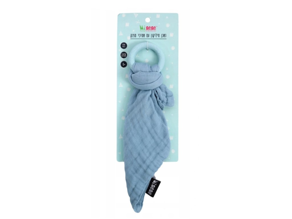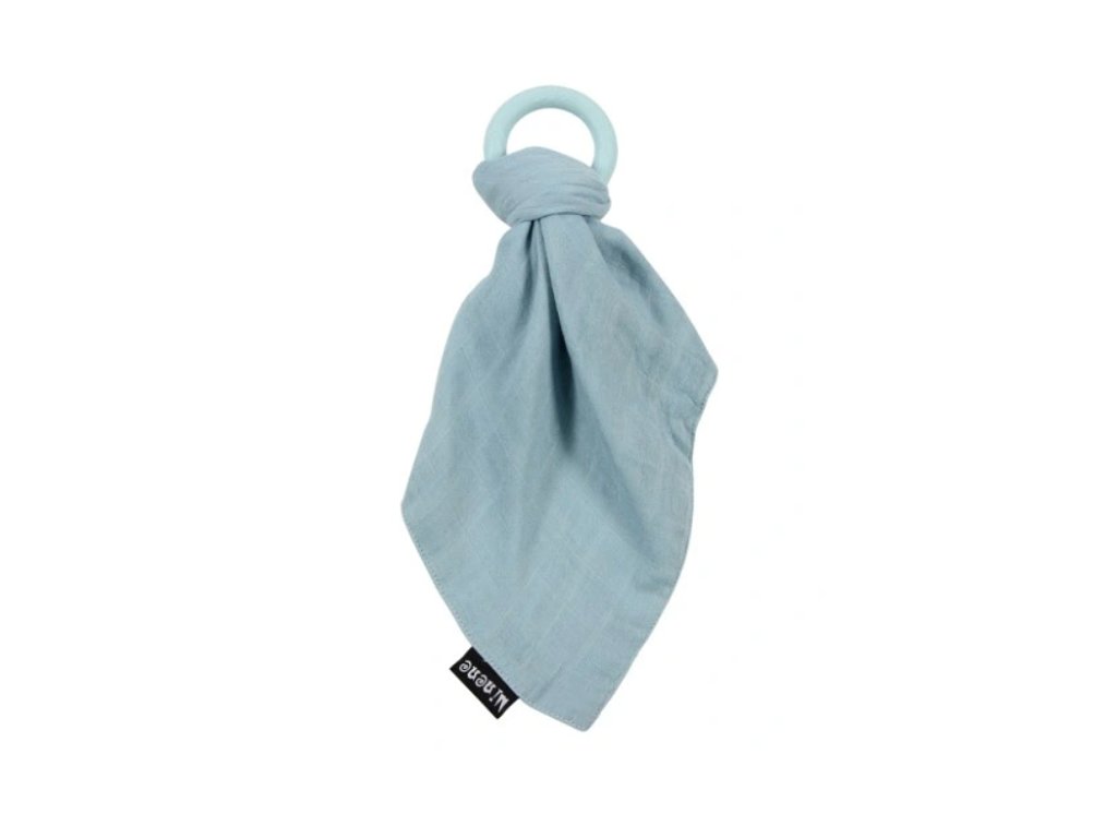Silikonové kousátko s mušelinovým přítulníčkem - modré, Minene