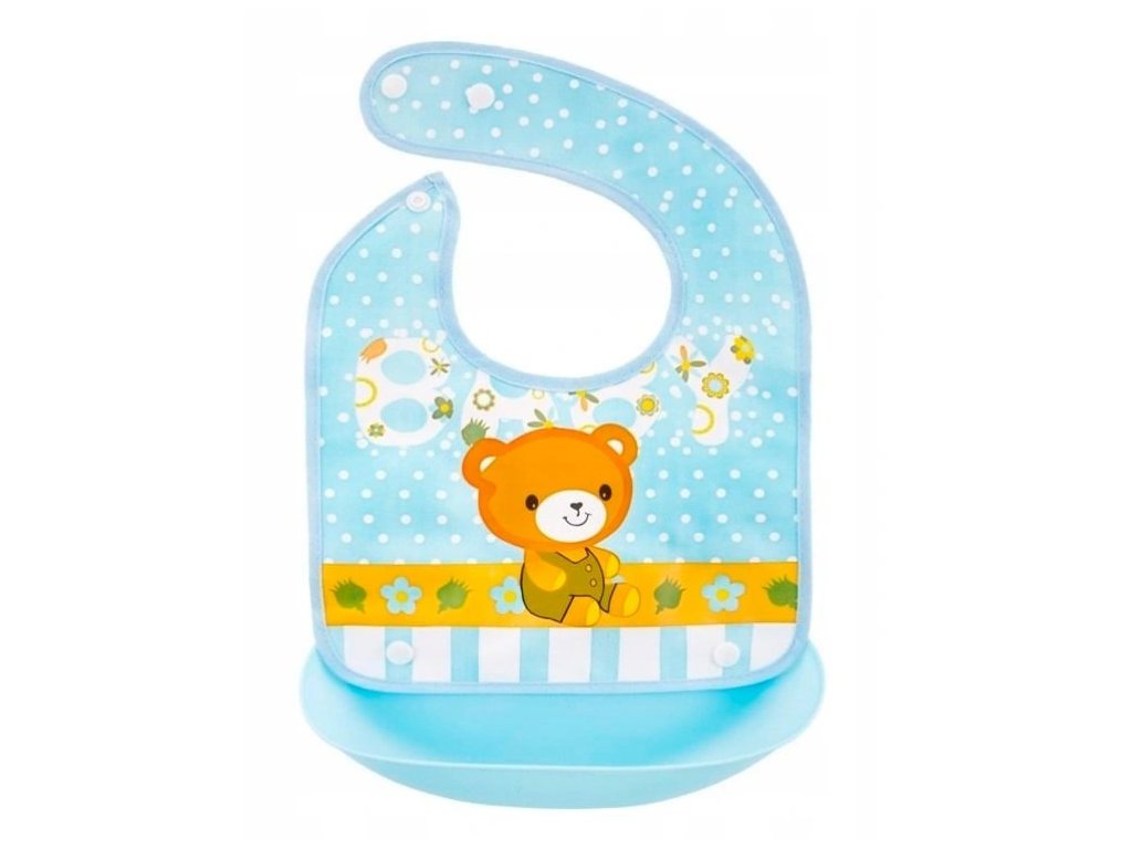 Silikonový bryndáček s kapsičkou Medvídek, modrý