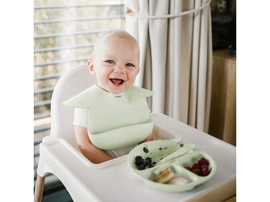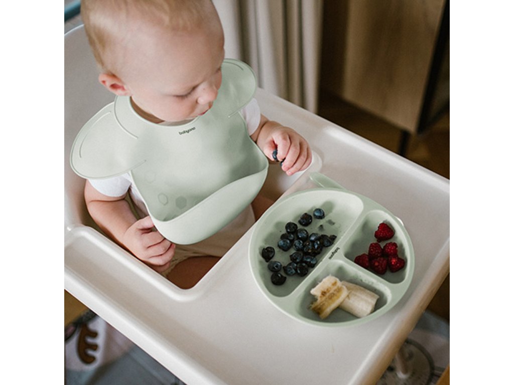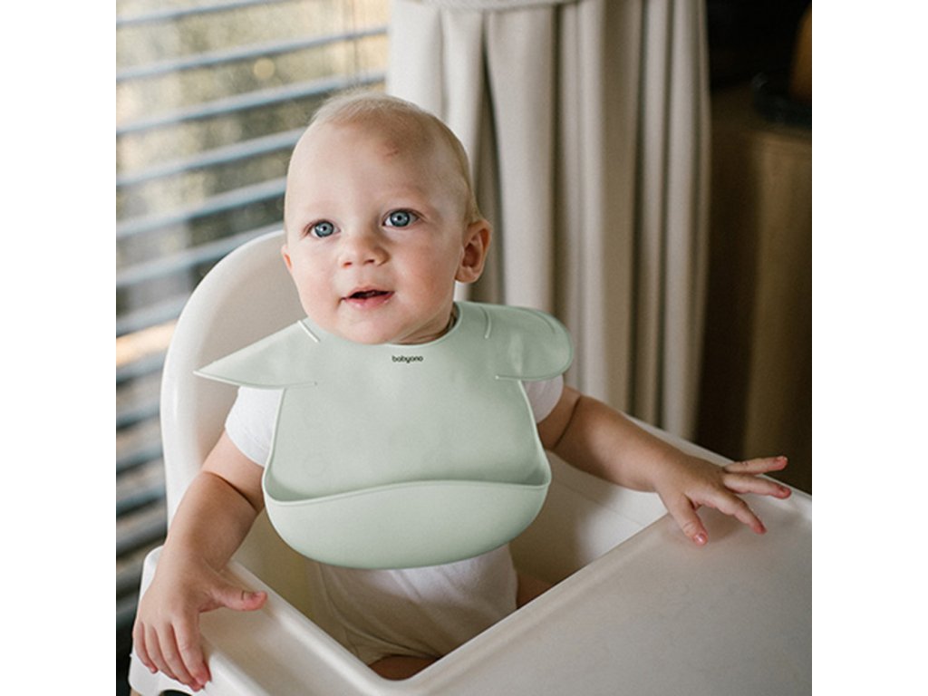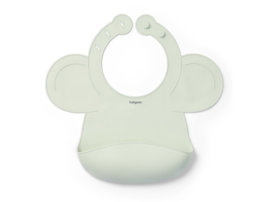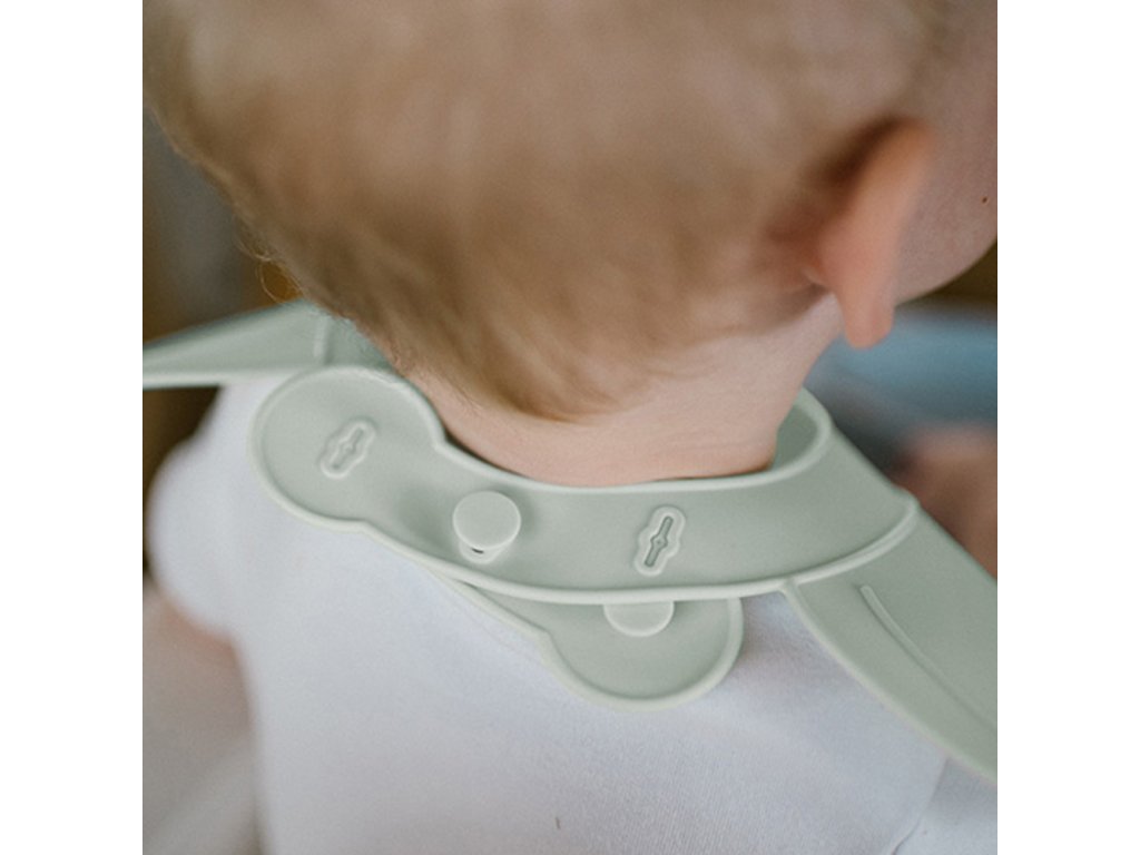 Silikonový bryndák s regulovaným zapínáním a kapsičkou, mátový