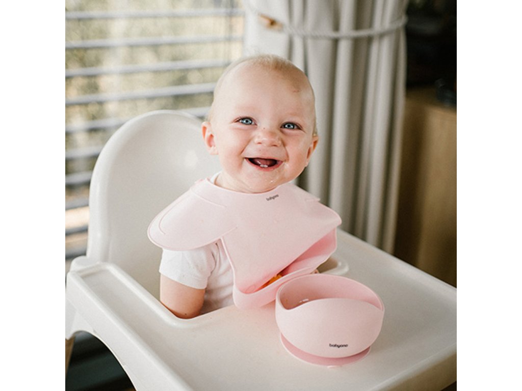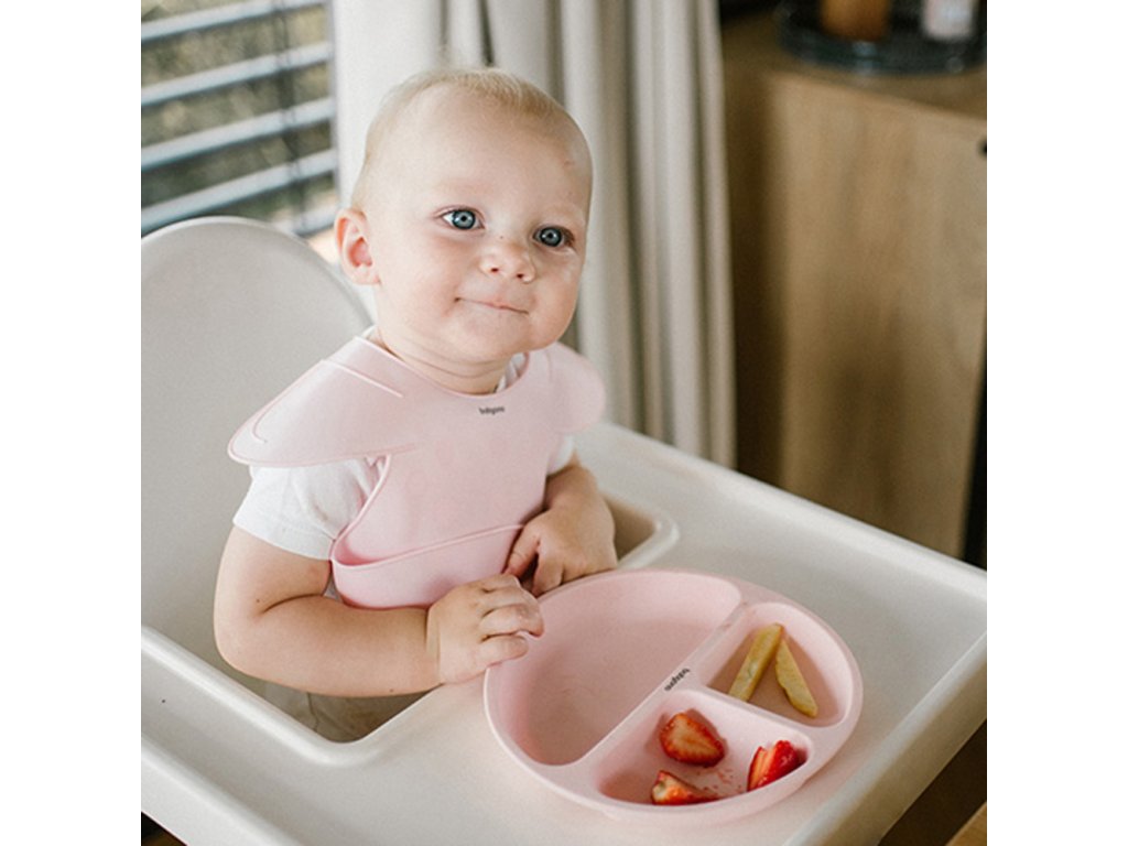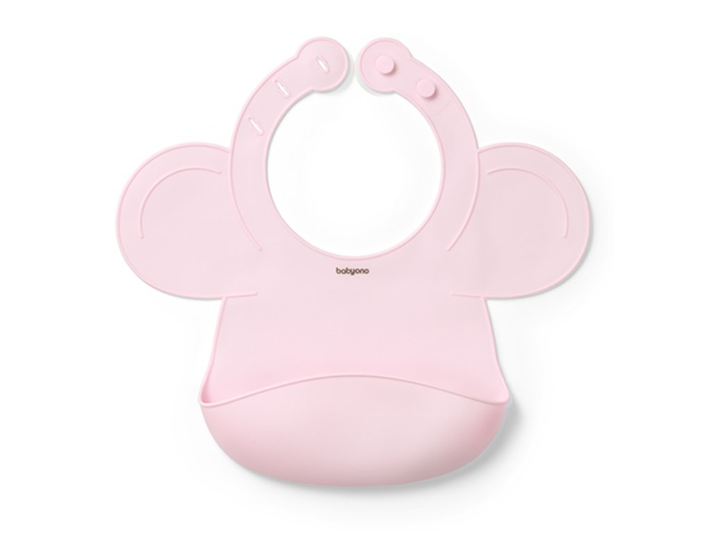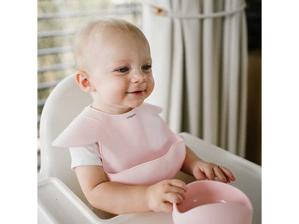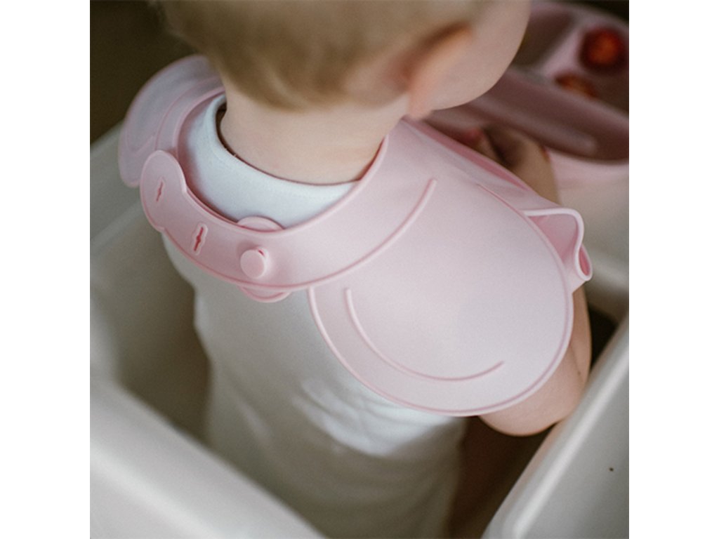 Silikonový bryndák s regulovaným zapínáním a kapsičkou, růžový