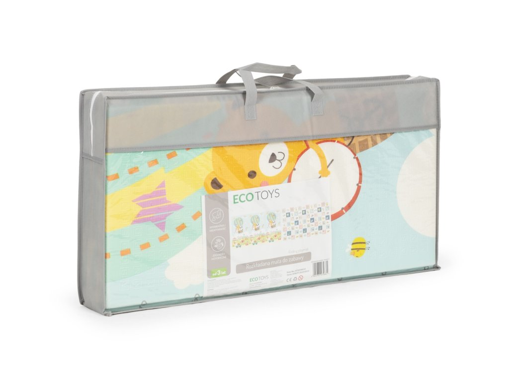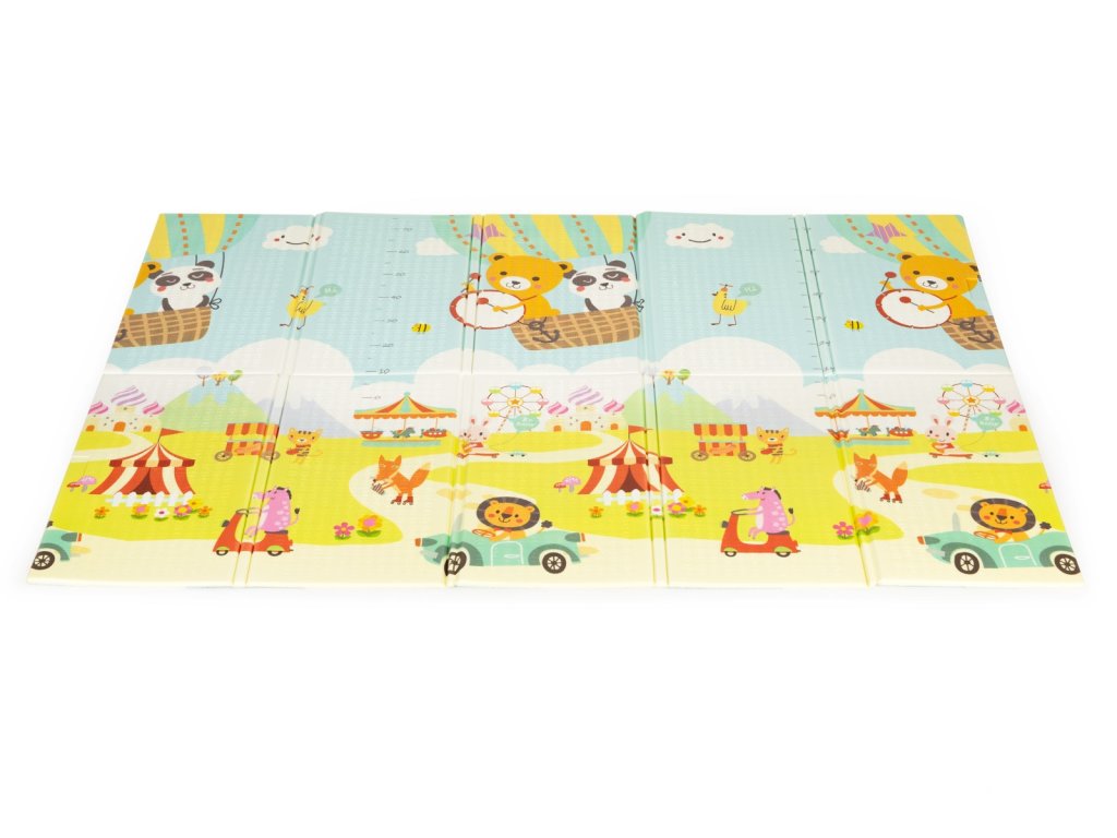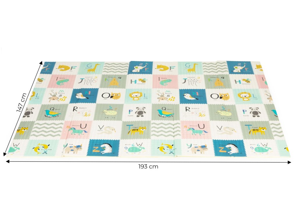 SKLÁDACÍ PODLOŽKA PRO DĚTI. Ideální do dětského pokoje nebo herny. Navržena tak, aby podporovala rozvoj dítěte. Skládací konstrukce s praktickou přenosnou taškou. Oboustranná – dva hravé vzory. Silná a odolná. Podporuje hrubou i jemnou motoriku dětí. Velmi snadno se čistí. Zajišťuje tepelnou izolaci od podlahy. Tlumí pády při hře nebo učení chůze. PERFEKTNÍ PRO MALÉ OBJEVITELE. Tato dětská podložka pro učení lezení a chůze je skvělým pomocníkem pro rozvoj dětí v období jejich prvních kroků. Skládací podložka je nejen funkční, ale i vzdělávací – vytvořená pro bezpečné a aktivní objevování světa. Měkká pěnová podložka je nejen praktickým řešením, ale i krásným doplňkem dětského pokoje. Umožňuje dětem rozvíjet schopnosti v bezpečném prostředí, podporuje jejich fantazii a přináší radost z objevování. OBOUSTRANNÝ DESIGN. Podložka je oboustranná, což přináší dětem dvojnásobnou porci zábavy i učení. Na jedné straně najdete barevný cirkus se zvířátky, vozidly a postavičkami, které podněcují fantazii a inspirují děti k vlastnímu tvoření příběhů. Druhá strana nabízí názvy zvířat a písmenka, takže pomáhá s rozvojem čtení a poznáváním. Děti se mohou učit názvy zvířátek, písmen a spojování slov zábavnou formou. VSADTE NA BEZPEČÍ. Podložka má protiskluzové výstupky na obou stranách, díky čemuž je stabilní na různých površích. Neposouvá se při hře, což zajišťuje bezpečnost dítěte. Obsahuje tepelně izolační vrstvu, která chrání dítě před chladnou podlahou. Díky tomu si může svobodně hrát a lézt bez obav z chladu. SNADNO SKLÁDACÍ A PRAKTICKÁ. Podložka je velmi praktická – dá se rychle složit i rozložit, takže je ideální pro přenášení i skladování. Obě strany nabízejí různé vzory: jedna strana zobrazuje cirkus se zvířátky, druhá barevné obrázky se jmény zvířat a písmenky. PRAKTICKÁ PŘENOSNÁ TAŠKA. Součástí balení je praktická přenosná taška, díky které lze podložku snadno přenášet kamkoli potřebujete. Taška zároveň chrání podložku před poškozením a znečištěním, když se právě nepoužívá. SPECIFIKACE. Rozměry: 147 × 193 cm. Protiskluzové výstupky na obou stranách. Dva motivy. Oboustranná. Skládací. Taška součástí balení. Tepelná izolace od podlahy. Hmotnost: 1,2 kg. Rozměr balení: 74 × 10 × 41 cm. Zákonné informace a bezpečnostní upozornění. Výrobek je určen pro děti od 3 let. Používejte pod dohledem dospělé osoby. Než výrobek předáte dítěti, odstraňte veškerý obalový materiál. Obal není hračka. Podložku používejte na rovném a čistém povrchu, mimo zdroje tepla a ostré předměty. Pravidelně kontrolujte stav výrobku. Při poškození výrobek dále nepoužívejte. Čištění: otírejte vlhkým hadříkem, nepoužívejte agresivní chemické prostředky.Doplňkové parametry