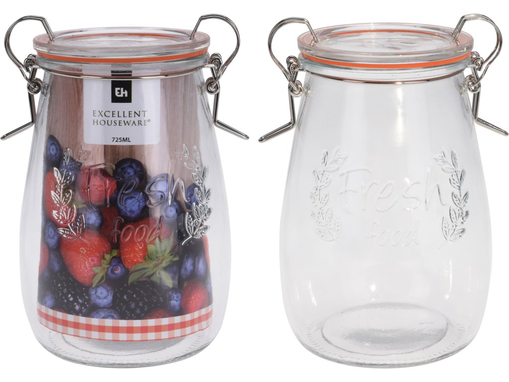 Drátěné klipy na obou stranách slouží k otevírání a uzavírání dózy a jejich pomocí tak lze víko úplně vyjmout. Tento systém usnadňuje čištění dózy. Můžete ji použít k uskladnění potravin, jako jsou sypké potraviny, ovoce, zelenina, saláty nebo předem připravených jídel. Výška dózy je 16 cm, průměr 9 cm