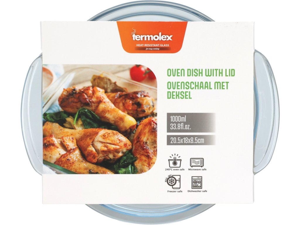 Kulatá zapekací mísa s víkem je vyrobená z varného skla, které patří v moderní kuchyni mezi žádané materiály. Je velmi odolné mechanicky i teplotně (odolnost +300/-40ºC). Výhodou je dlouhá životnost, hygienická nezávadnost (sklo je hladké a neporézní) a snadná údržba, mísu lze mýt v myčce nádobí. Rozměry: 26 x 23 x 11 cm