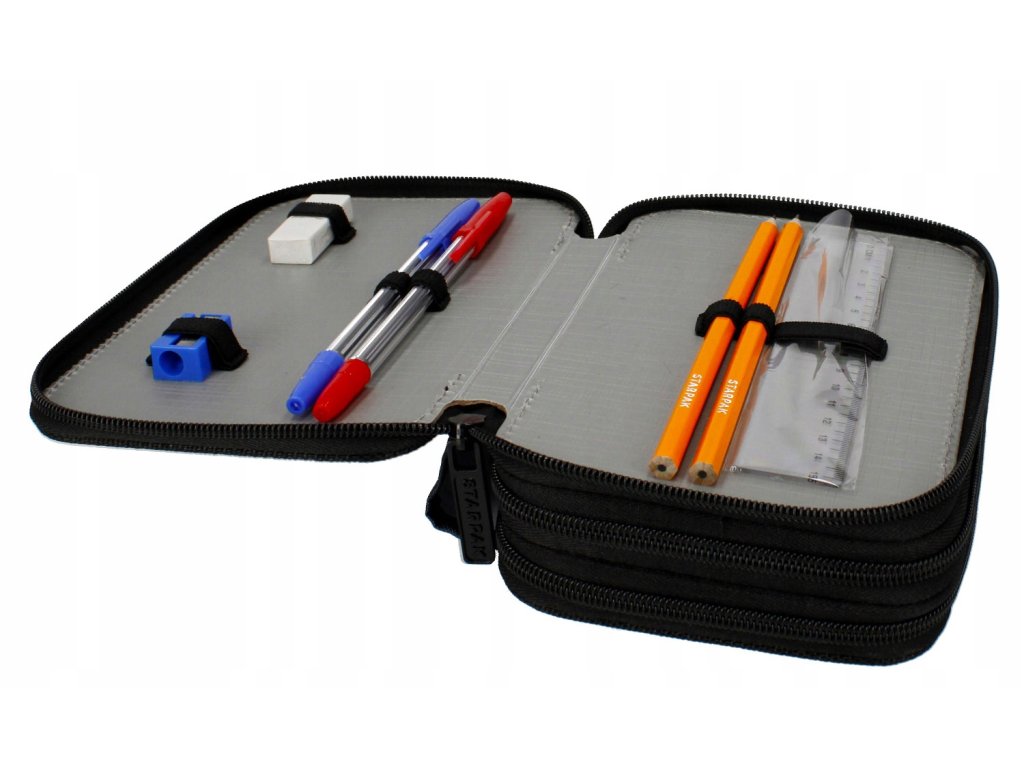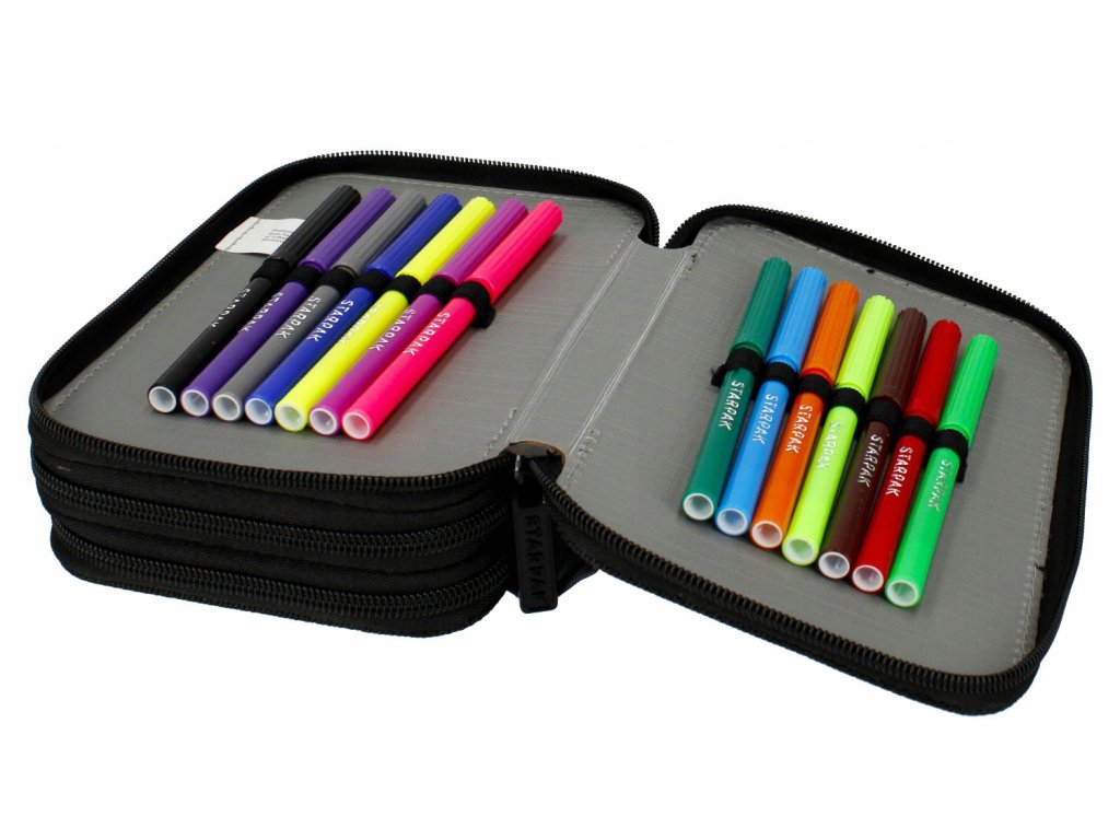 Třípatrový rozkládací školní penál. Penál má 3 přihrádky uzavírané na zip. Ideální pro všechny, kteří mají rádi pořádek ve svém penálu. Každý kus vybavení zde najde své místo. V jedné přihrádce jsou fixy, ve druhé pastelky a ve třetí potřebné školní pomůcky.