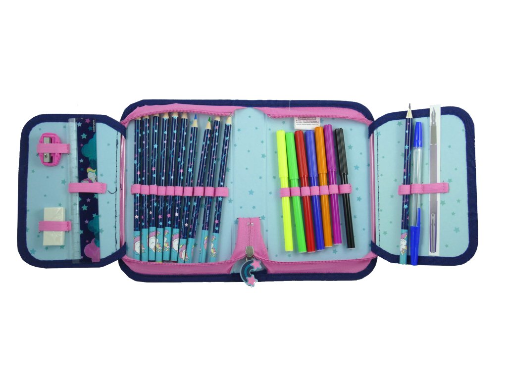 Školní rozkládací penál Jednorožec ve hvězdách s náplní