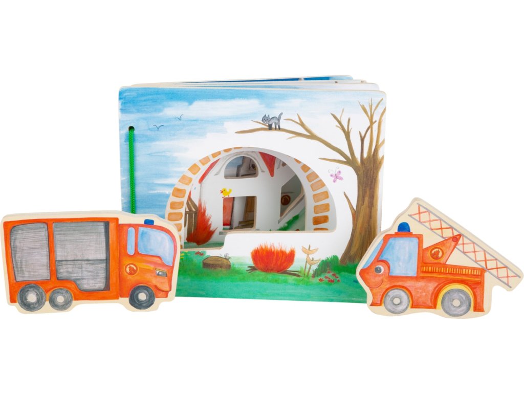 Máme výjezd, hoří! S touto interaktivní knížkou vyrobenou z FSC certifikovaného dřeva se děti naučí, jak to chodí v životě hasiče. Dřevěné figurky inspirují dětskou fantazii a děti si třeba vymyslí svůj vlastní příběh. Po uhašení ohně mohou děti figurky strojů vrátit zpět do knihy. Naučná kniha, která rozvíjí představivost a vypravěčství u dětí. Hlavní vlastnosti: rozvíjí motoriku dětí podporuje dětskou představivost a komunikacivyrobeno z 100% FSC dřeva Značka a certifikát FSC® (Forest Stewardship Council) zaručuje, že dřevo, ze kterého byl produkt vyroben, nebylo vytěženo nelegálně a pochází z lesů obhospodařovaných šetrným či přírodě blízkým způsobem, ve kterém jsou dodržovány přísné environmentální a sociální požadavky. Značka FSC® na výrobku znamená, že svým nákupem pomáháte chránit lesy a podporujete šetrné, odpovědné či přírodě blízké hospodaření, díky kterému jsou naše lesy stabilnější, zdravější, mají přirozenou druhovou skladbu a lépe odolávají negativním následkům klimatických změn.Doplňkové parametry