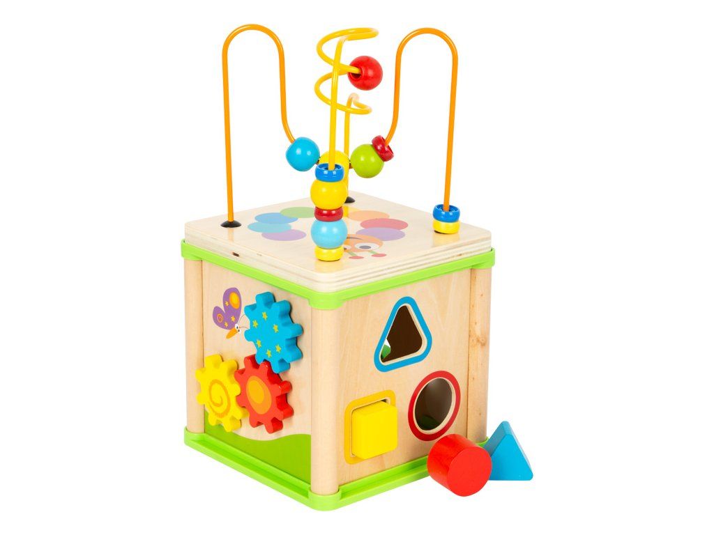 Pokud nemáte ve své herně mnoho místa a není v ní prostor na hraní, je tato multifunkční motorická kostka ideální. S oddělitelným labyrintem, ozubenými kolečky, hodinami a logickou hrou děti hravě trénují jemné motorické dovednosti a jejich soustředění. Hlavní vlastnosti: odnímatelná vrchní část kostky s kovovým labyrintemkompaktní rozměryrozvíjí motoriku dětíveselý barevný designDoplňkové parametry