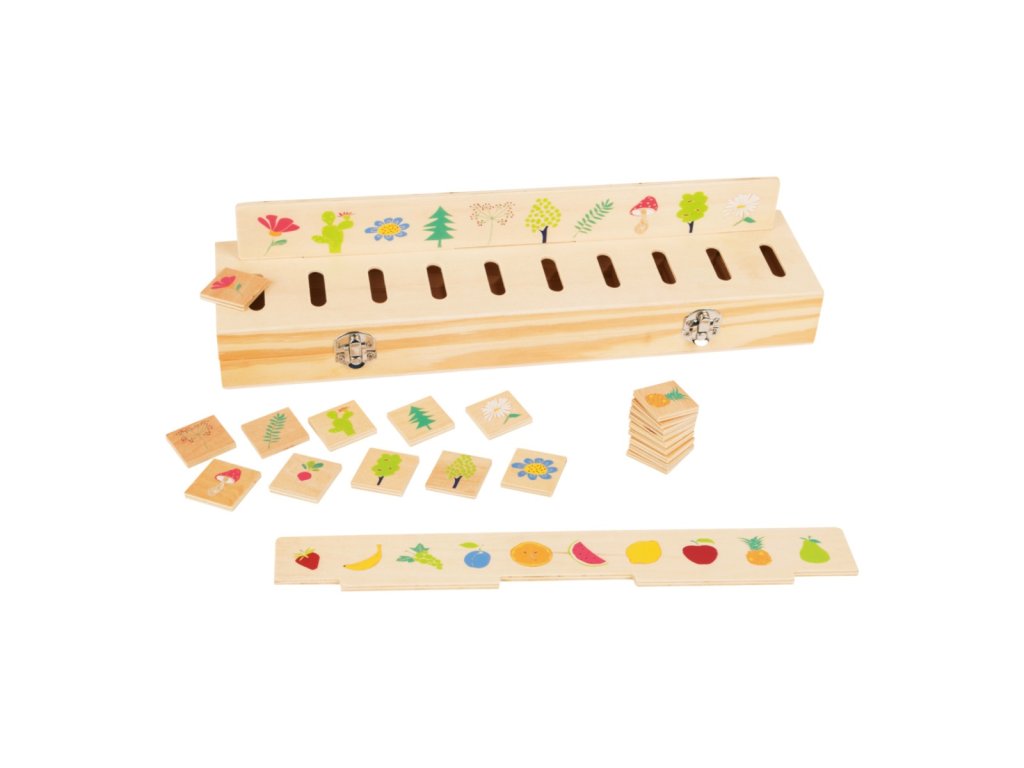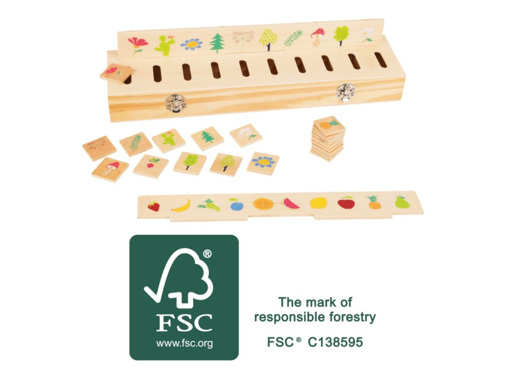 Třiďte rostliny, ovoce a zvířata podle druhu, nechte dítko rozpoznávat barvy a tvary. V herním boxu lze všechny součásti, desky s předlohami i čtvercové žetony, prakticky uschovat a sbalit na cesty. Vyrobeno ze 100% certifikovaného dřeva FSC®. Hlavní vlastnosti: 3 desky předloh, 30 žetonůpraktické balenívyrobeno z 100% FSC® dřeva Značka a certifikát FSC® (Forest Stewardship Council) zaručuje, že dřevo, ze kterého byl produkt vyroben, nebylo vytěženo nelegálně a pochází z lesů obhospodařovaných šetrným či přírodě blízkým způsobem, ve kterém jsou dodržovány přísné environmentální a sociální požadavky. Značka FSC® na výrobku znamená, že svým nákupem pomáháte chránit lesy a podporujete šetrné, odpovědné či přírodě blízké hospodaření, díky kterému jsou naše lesy stabilnější, zdravější, mají přirozenou druhovou skladbu a lépe odolávají negativním následkům klimatických změn.Doplňkové parametry