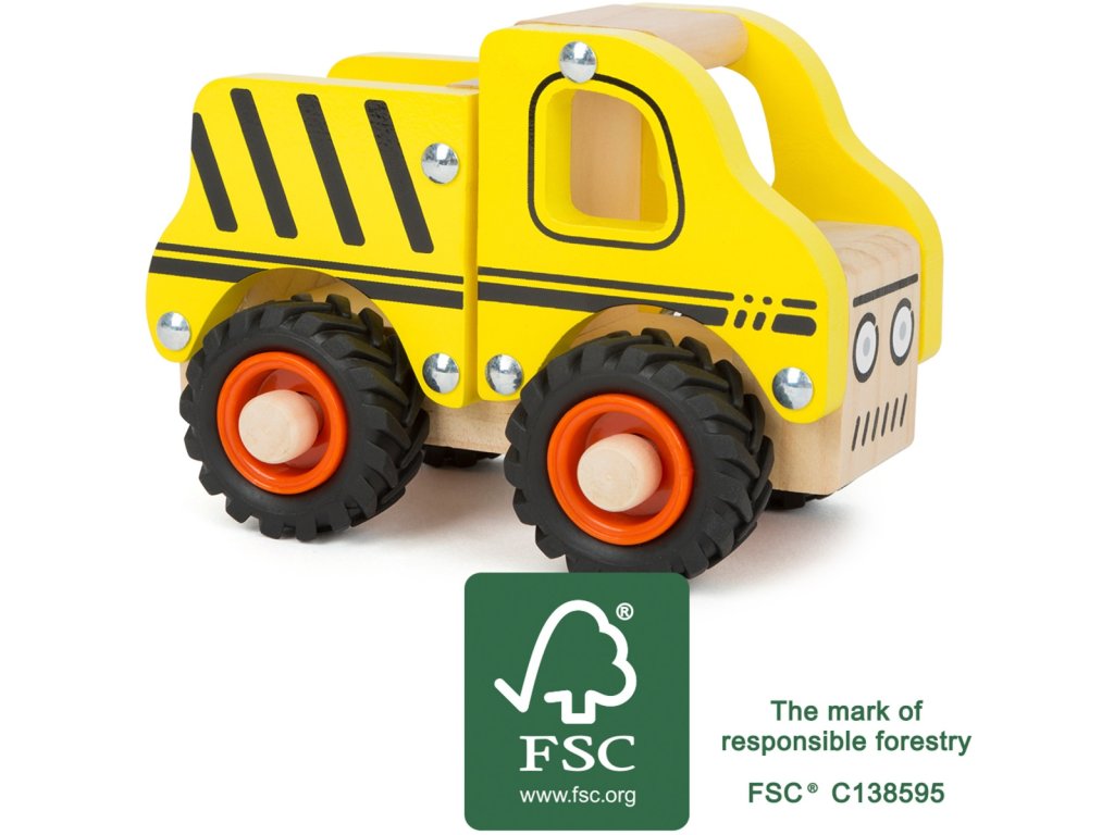 Vybaveno pro každé staveniště. Toto vozidlo stavby vyrobené ze 100% certifikovaného dřeva FSC® přepravuje nejdůležitější materiály na další staveniště. Díky pogumovaným pneumatikám s vhodným profilem do nerovného terénu bezpečně a tiše krouží dětským pokojem. Kompaktní vozidlo pro radost každého dítěte. Hlavní vlastnosti: 100% certifikované drevo FSC®pogumované pneumatiky Značka a certifikát FSC® (Forest Stewardship Council) zaručuje, že dřevo, ze kterého byl produkt vyroben, nebylo vytěženo nelegálně a pochází z lesů obhospodařovaných šetrným či přírodě blízkým způsobem, ve kterém jsou dodržovány přísné environmentální a sociální požadavky. Značka FSC® na výrobku znamená, že svým nákupem pomáháte chránit lesy a podporujete šetrné, odpovědné či přírodě blízké hospodaření, díky kterému jsou naše lesy stabilnější, zdravější, mají přirozenou druhovou skladbu a lépe odolávají negativním následkům klimatických změn.Doplňkové parametry