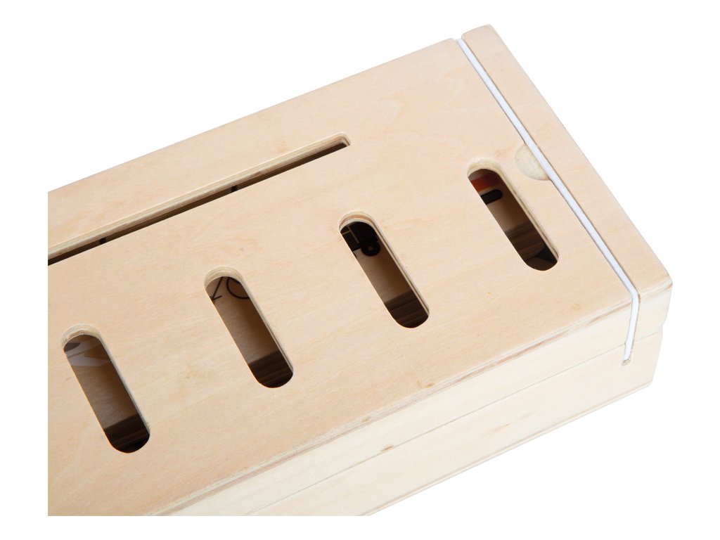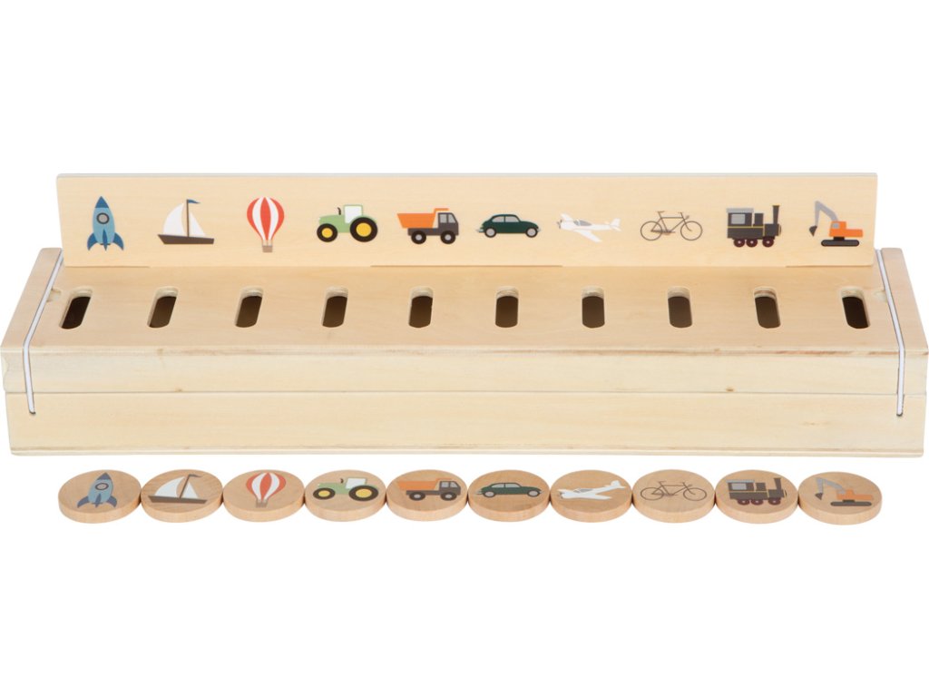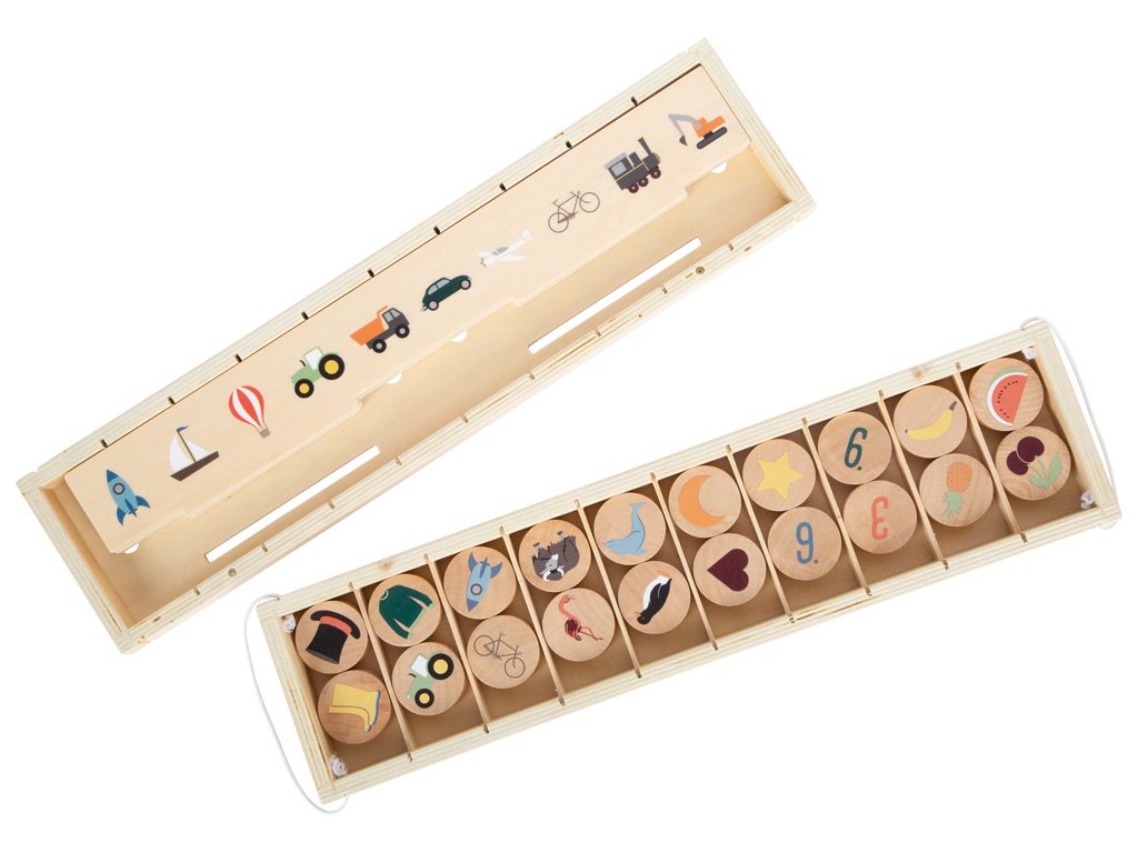 Tento dřevěný zásobník nabízí spoustu motivů k objevování se třemi oboustrannými vkládacími panely a 60 ks obrázkových žetonů na téma doprava, zvířata, čísla, tvary, oblečení, ovoce a zelenina. Při třídění a vkládání žetonu do krabičky si děti trénují jemnou motoriku, rozpoznávání barev a tvarů zábavným způsobem. Motivy lze také využít k učení slov a zdokonalování slovní zásoby zábavnou formou. Deset samostatných přihrádek uvnitř dřevěného zásobníku a dvě západky na gumičku zajišťují bezpečné uložení obsahu. Praktická učební hračka vhodná i když jste na cestách. Hlavní vlastnosti: tři oboustranné obrazové panelymožnost uložit do uzavíratelného zásobníkuučební hračka vhodná i na cestyrozpoznávání barev a tvarů zábavným způsobemrozšíření slovní zásobyDoplňkové parametry