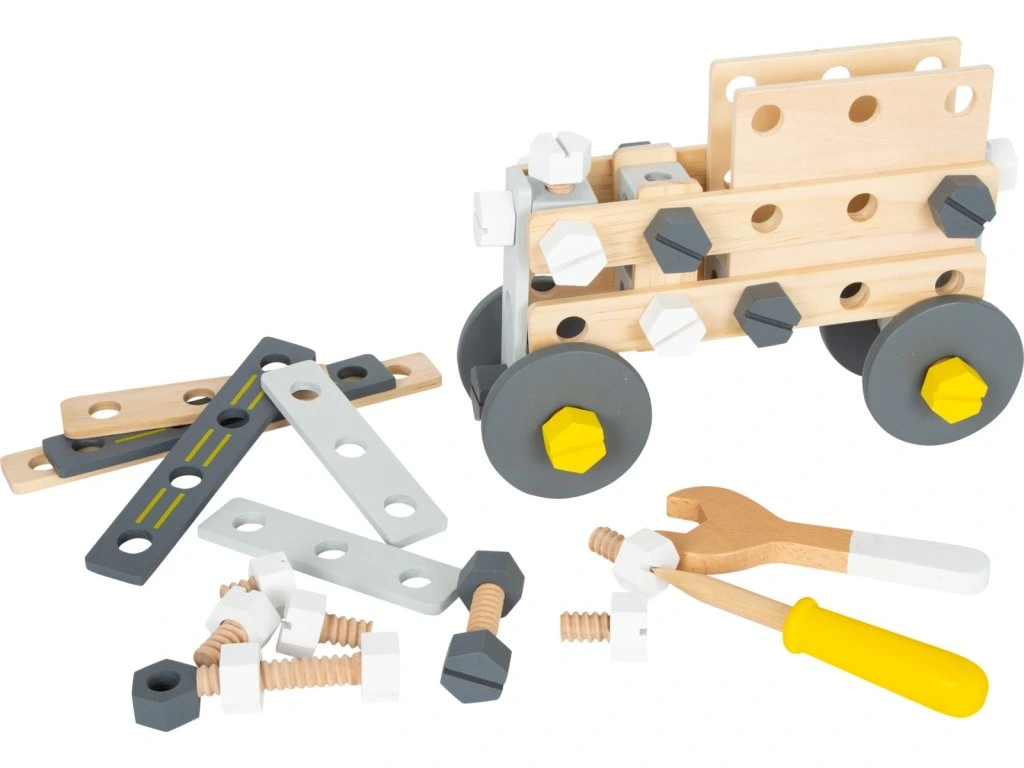 Stavebnice, pomocí které se procvičuje trojrozměrné stavění a kreativitě se nekladou žádná omezení. Sada bsahuje 2 dřevěné nástroje (klíč, šroubovák), Rozsáhlé příslušenství od konstrukčních lišt, konstrukčních desek, šroubů, matic, kostek, kol, adaptérů kol a distančních pouzder a také box pro a ukládání celé sady. Hlavní vlastnosti: podporuje kreativitu a představivost lze ideálně doplnit dalšími produkty ze série nástrojů Miniwob MiniwobSeznamte se s malými woby, nadšenými krokodýlími kutily! S jejich pomocí jde všechna práce jako po másle a žádná stavba není dost velká a promyšlená. Pestrá řada nástrojů a nářadí skýtá dokonalou zábavu pro všechny malé řemeslníky, jejich prostřednictvím mohou být kreativní a realizovat všechny své fantastické nápady. Jednotlivé sady je možno mezi sebou kombinovat a rozšiřovat s rostoucími dovednostmi dětí. Díky jednotícímu barevnému motivu a vyobrazením roztomilých Wobů je možno vytvořit jedinečný a ucelený dílenský koutek, který bude zároveň hodnotnou stavebnicí rozvíjející zručnost a představivost.Doplňkové parametry