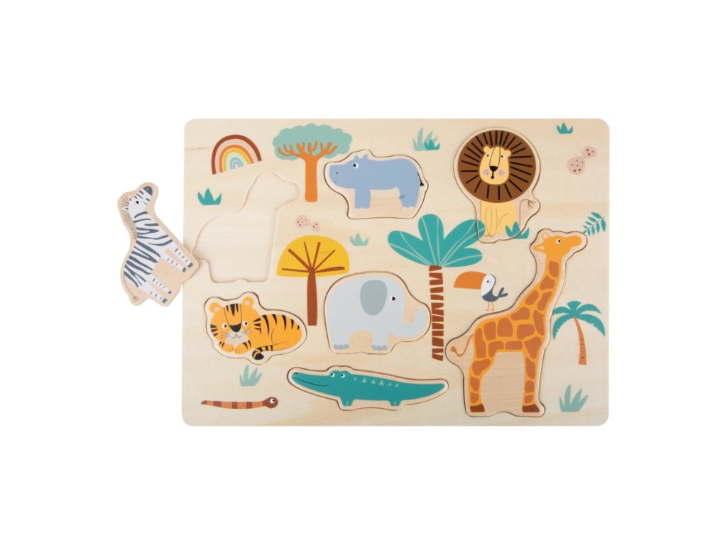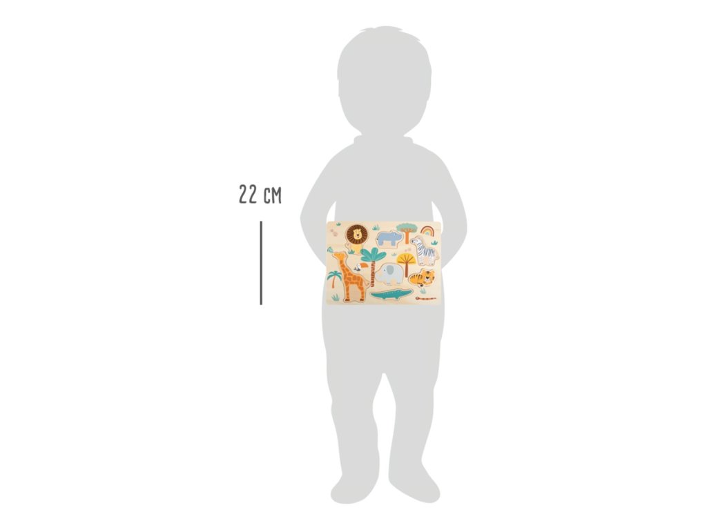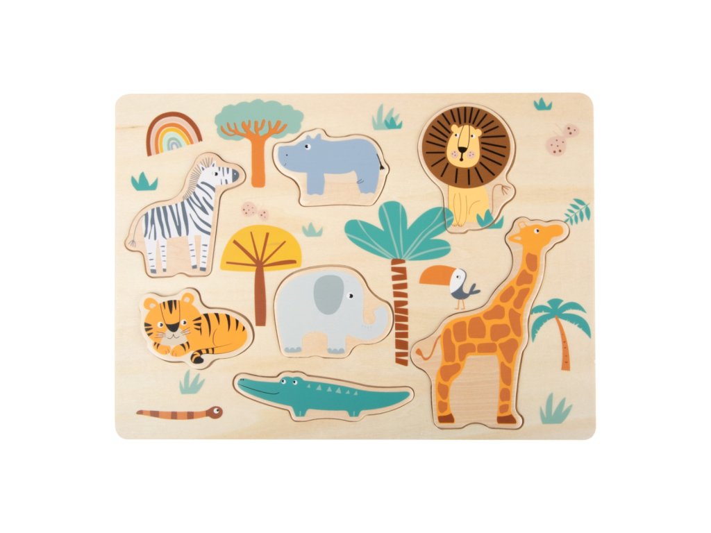 Vítejte na safari! Toto dřevěné puzzle ma za cíl vrátit zvířátka savany zpět na jejich místo. Nejen, že trénuje motoriku dětí, zároveň jim pomůže s rozeznáváním tvarů a bude od nich vyžadovat soustředěnost a trpělivost. Puzzle nadchne rodiče i děti svými veselými motivy safari a trendy barvami. Hlavní vlastnosti: ilustrováno, pastelové barvyzákladová deska a 7 dílůDoplňkové parametry