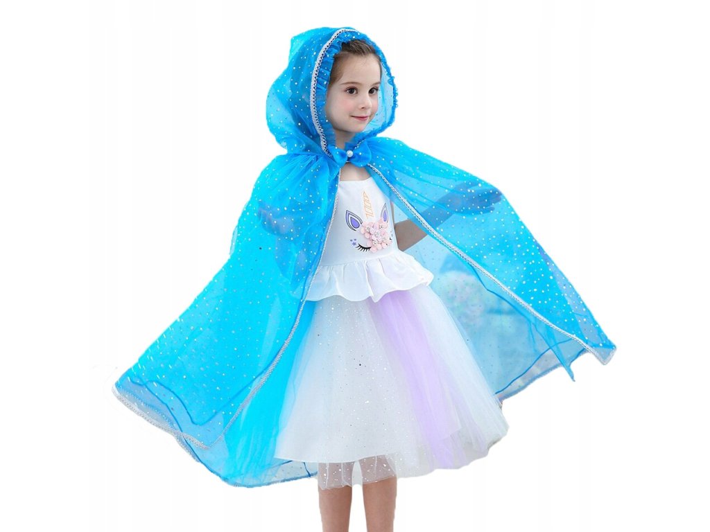 Vstupte do kouzelného světa pohádky Frozen s naší úžasnou pelerínou a sadou doplňků krásné Elsy. Souprava obsahuje vše, co vaše malé princezny potřebují k tomu, aby se staly částí této nezapomenutelné pohádky. Pelerína má krásnou výraznou modrou barvu. Kapuce je ozdobně řasená a zdobená a zlatou stužkou. Na jemné látce je drobný zlatý potisk a po krajích je našitá ozdobná krajka. Součástí je i elegantní copánek, který jim umožní přetvořit se na královnu zimy, krásnou korunku, která dodá jejich vzhledu nádech královského půvabu, a žezlo s rukavicemi, které jsou klíčem k ovládání ledové magie.