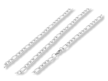 Řetízek s náramkem ocelový figaro. Rozměry řetízků, délka 60 cm, šířka 5 mm, tloušťka 2 mm, rozměr náramků , délka 20 cm, šířka 5 mm, tloušťka 2 mm. Materiál: chirurgická ocel....
