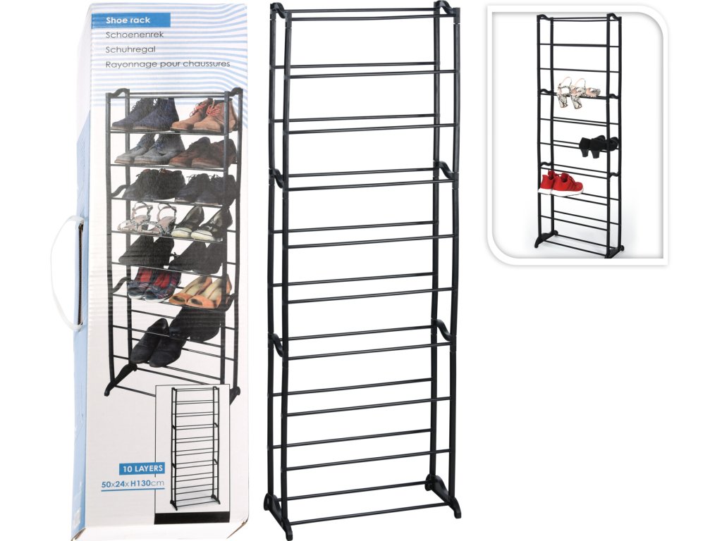 Tento stojan na obuv má 10 pater, do kterých se snadno vejde až 30 párů bot; budou tak dobře organizované na jednom místě. Kompaktní velikost je skvělá v tom, že stojan můžete umístit prakticky kamkoliv. Do haly, chodby, na verandu, sklepa nebo na půdu.