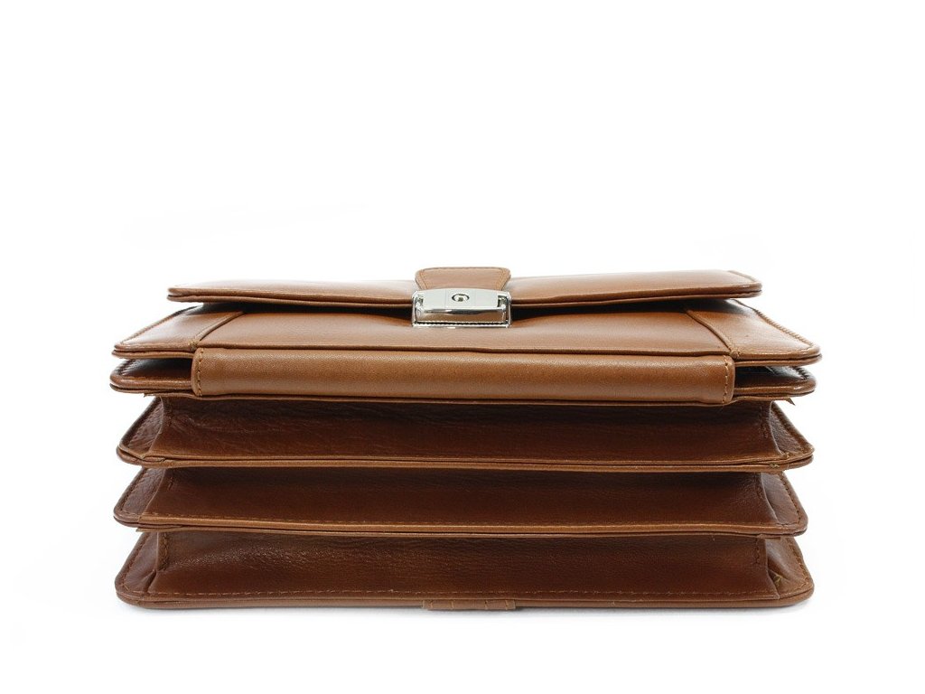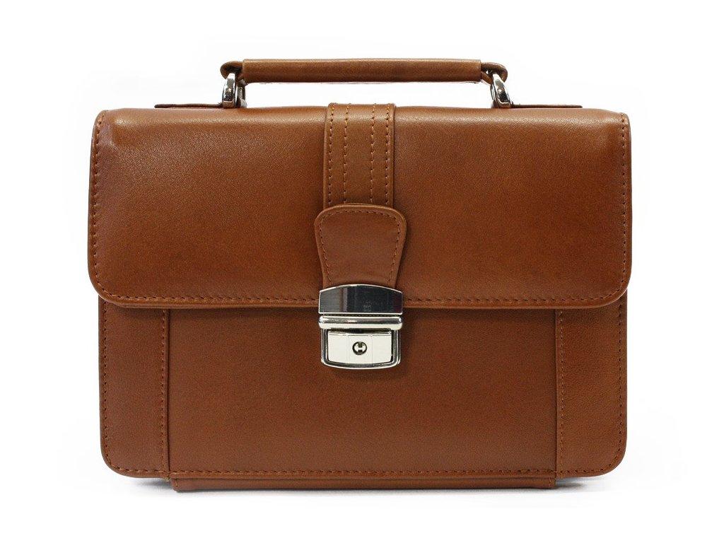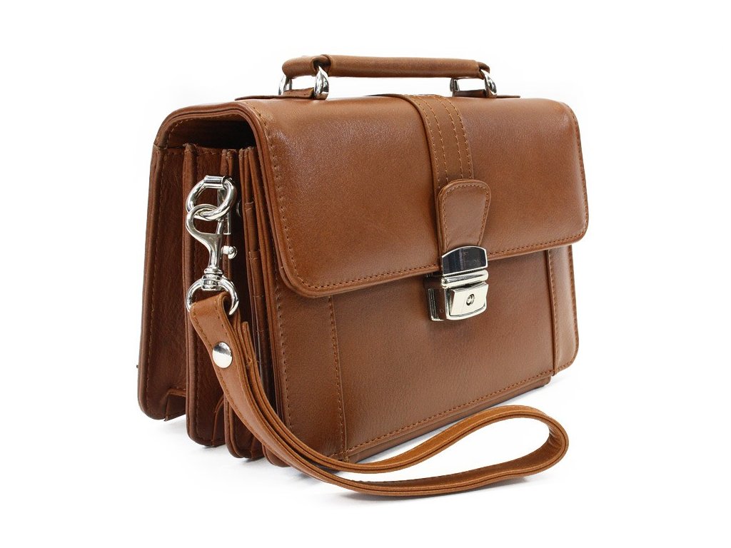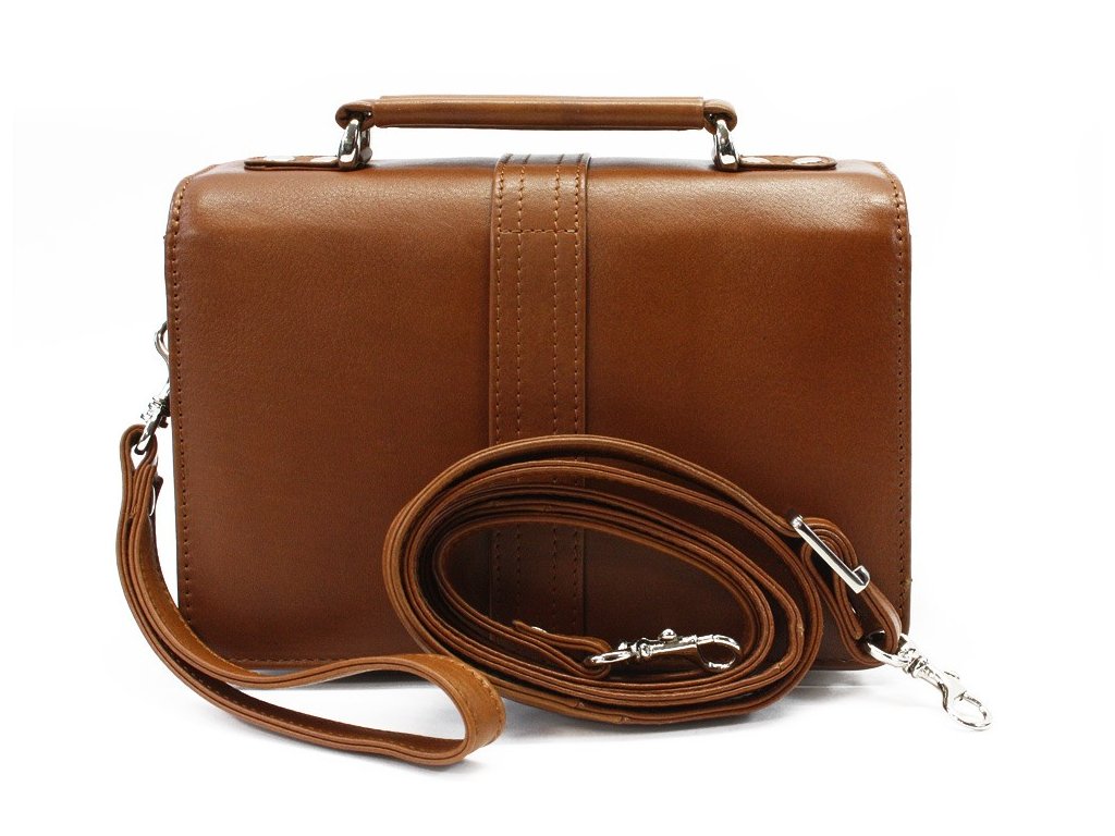 Světle hnědá kožená etue se sklápěcím registrem a držadlem 611-2415-05