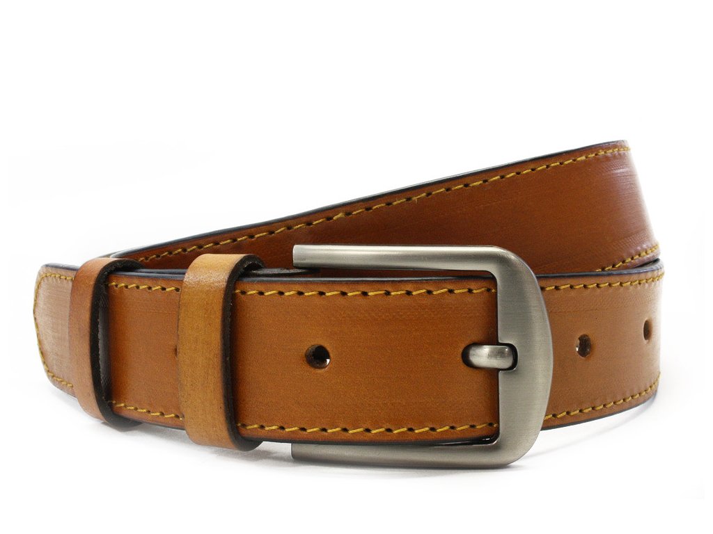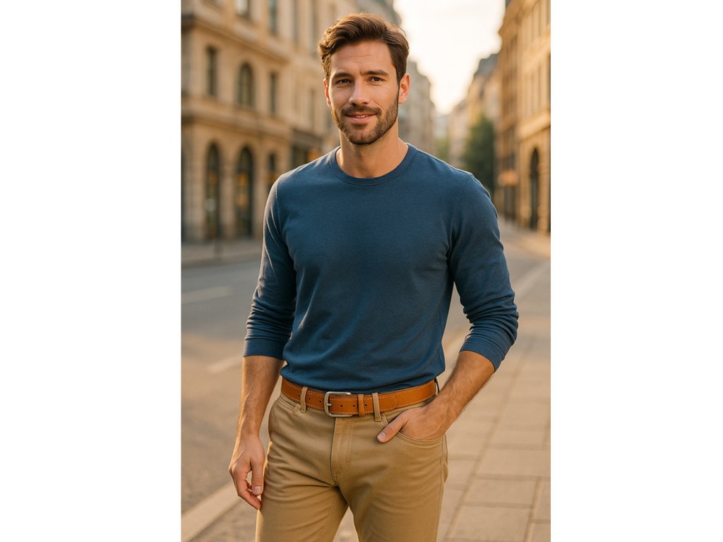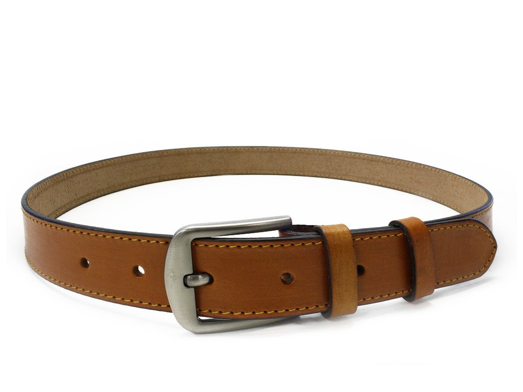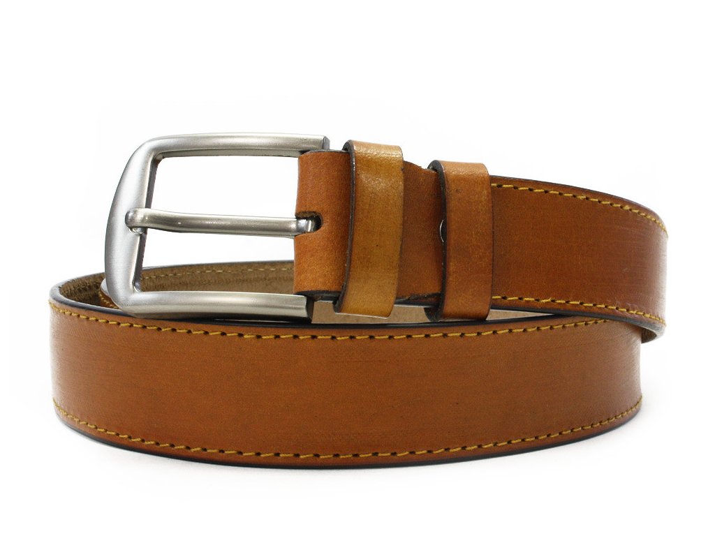 Pánský kožený pánský opasek je určený k nošení do džínových, plátěných nebo jiných volnočasových kalhot. Svým designem a šíří odpovídá současným trendům a požadavkům. Opasek má masivní kovovou sponu a řemen je vyrobený z jednoho kusu pravé hovězí kůže. Barva pásku by měla být sladěná s barvou oblečení nebo obuvi.