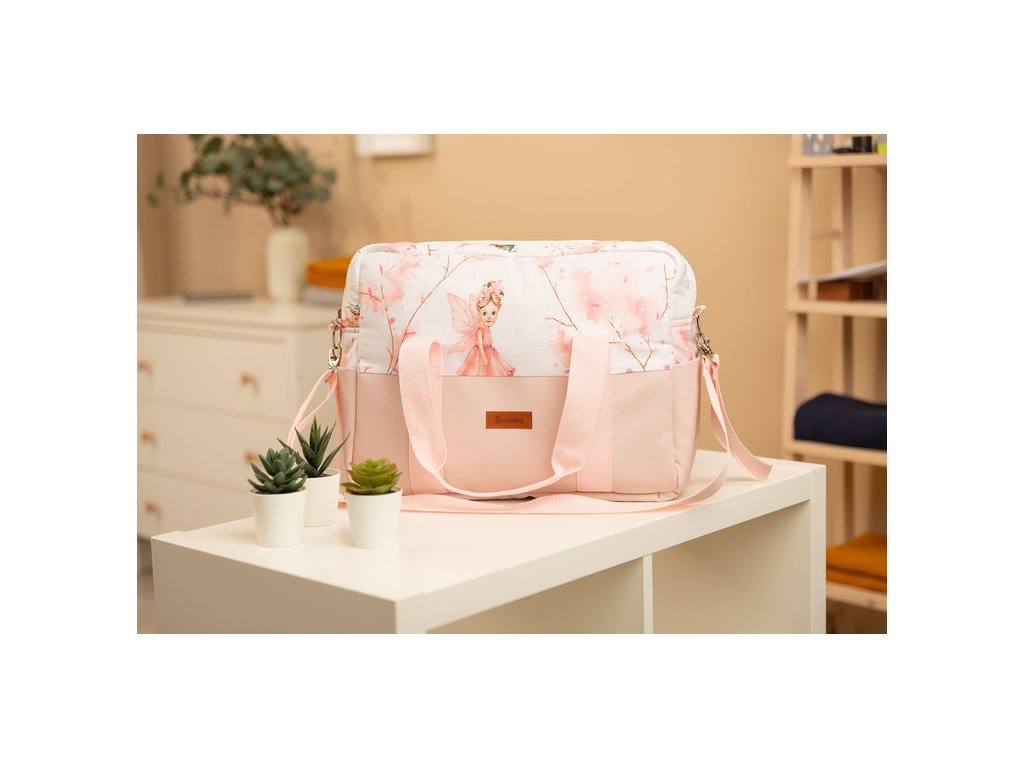 Taška ke kočárku, ekokůže, Víla Ema, růžová, bílá