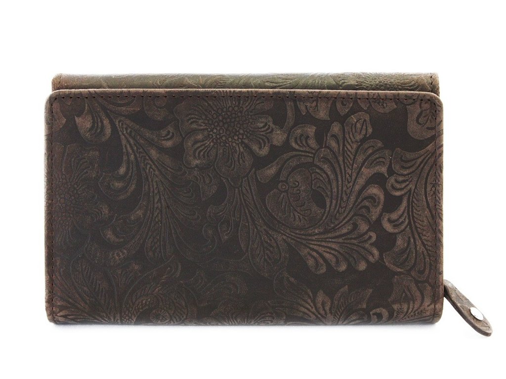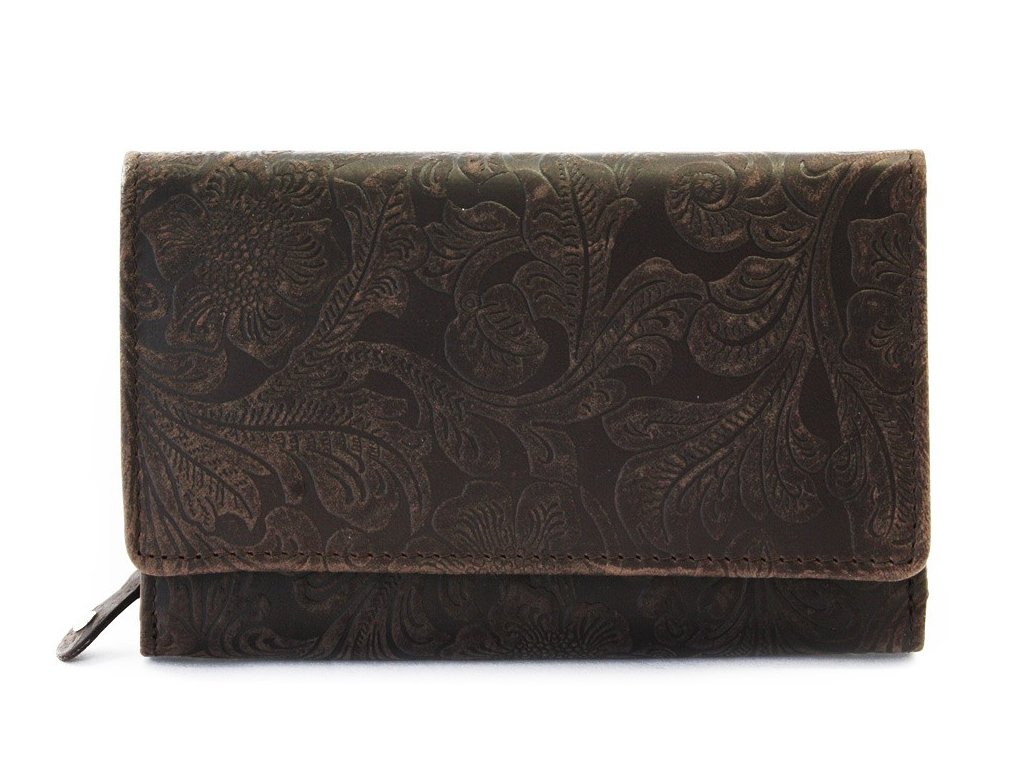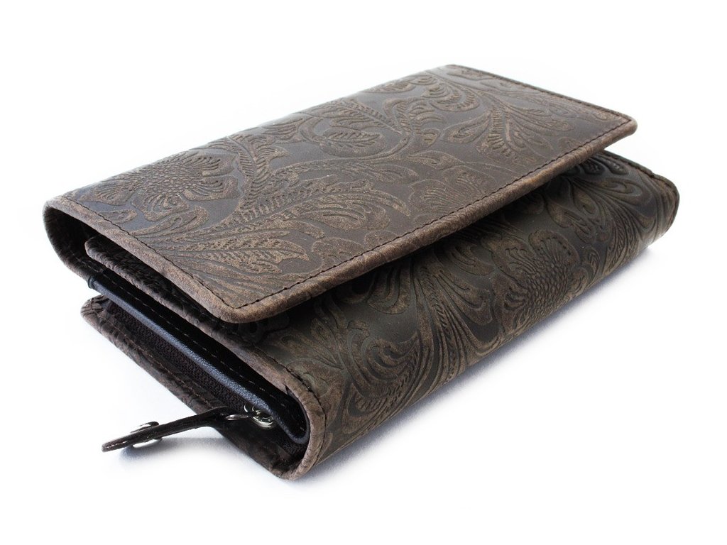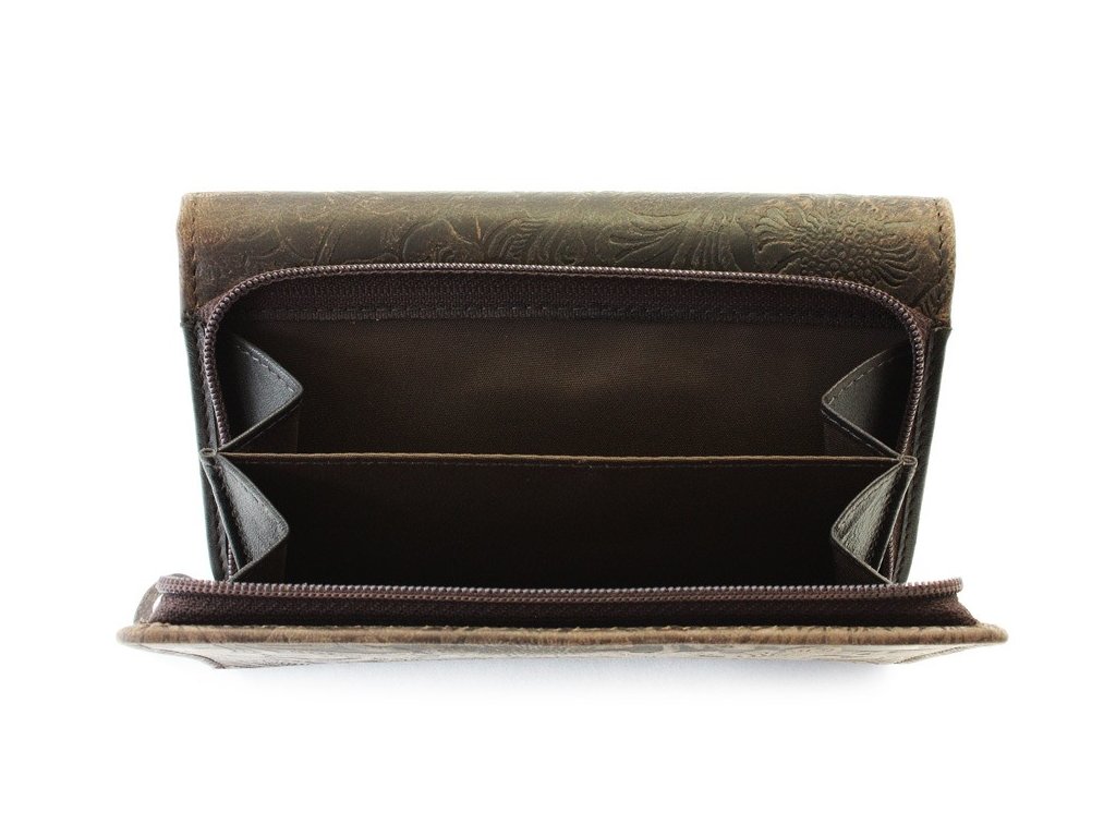 Tmavě hnědá dámská střední kožená peněženka s klopnou 511-2266-47