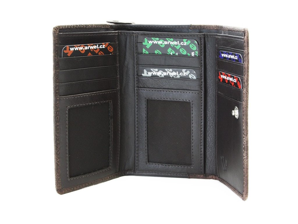 Elegantní dámská střední peněženka obsahuje 1 přihrádku na bankovky a další 3 otevřené přihrádky, dělený zipový mincovník, 13 kapes na platební karty či doklady a 2 průhledné okna. Šití je v barvě kůže.