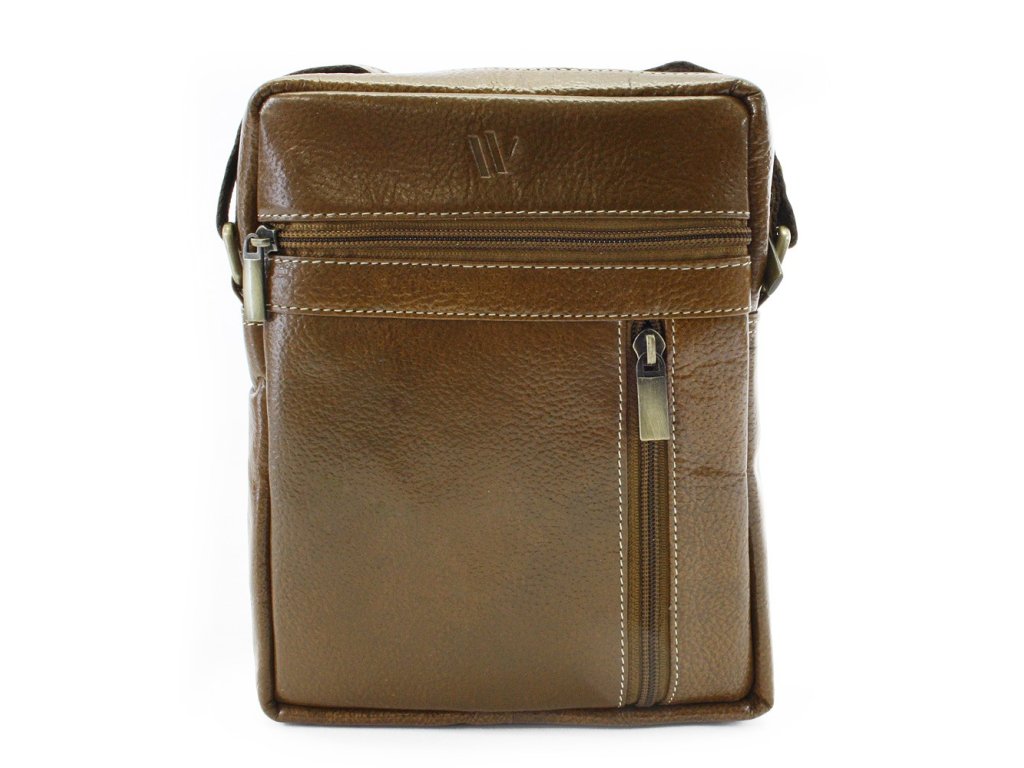 Tmavě hnědý pánský kožený zipový crossbag 215-1218-47