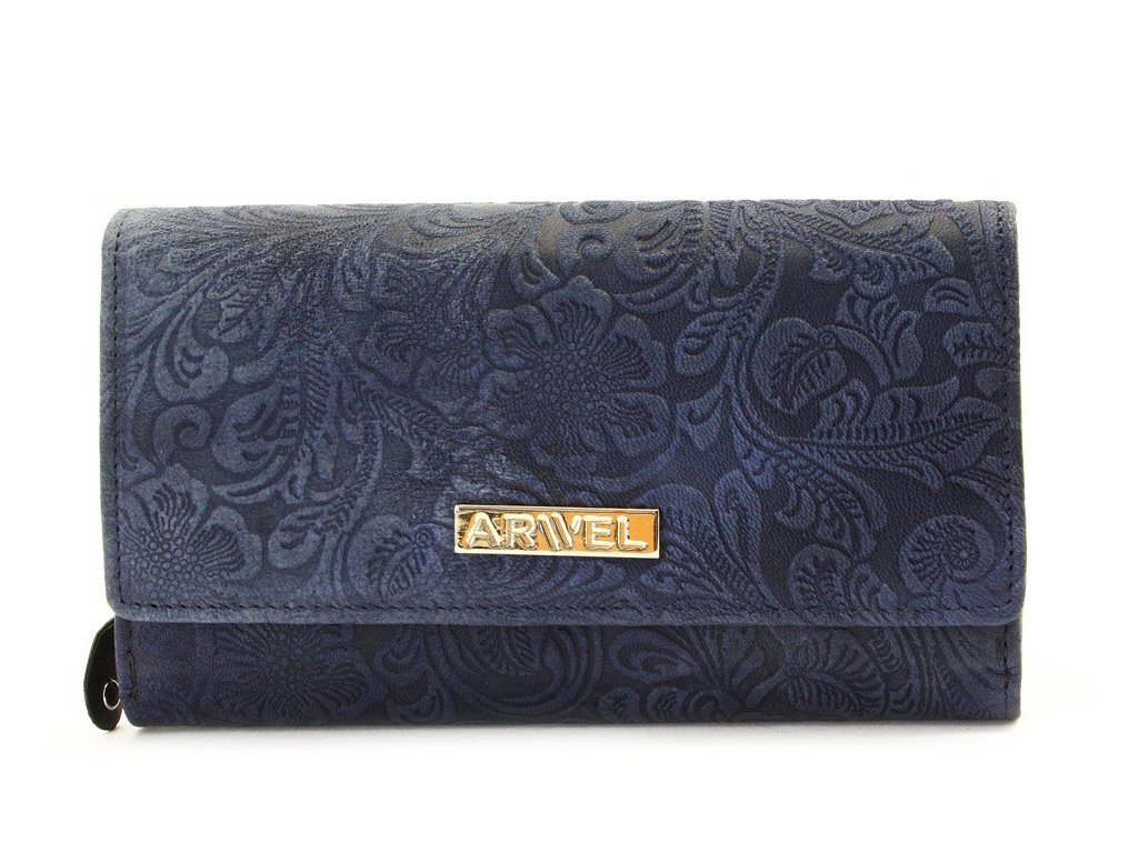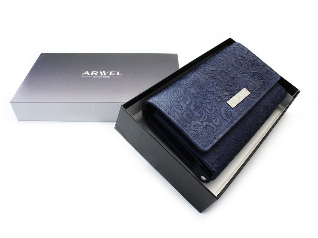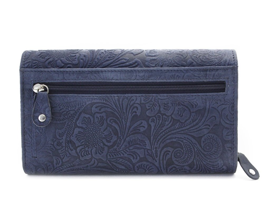 Tmavě modrá dámská kožená klopnová peněženka se vzorem 511-2235-97