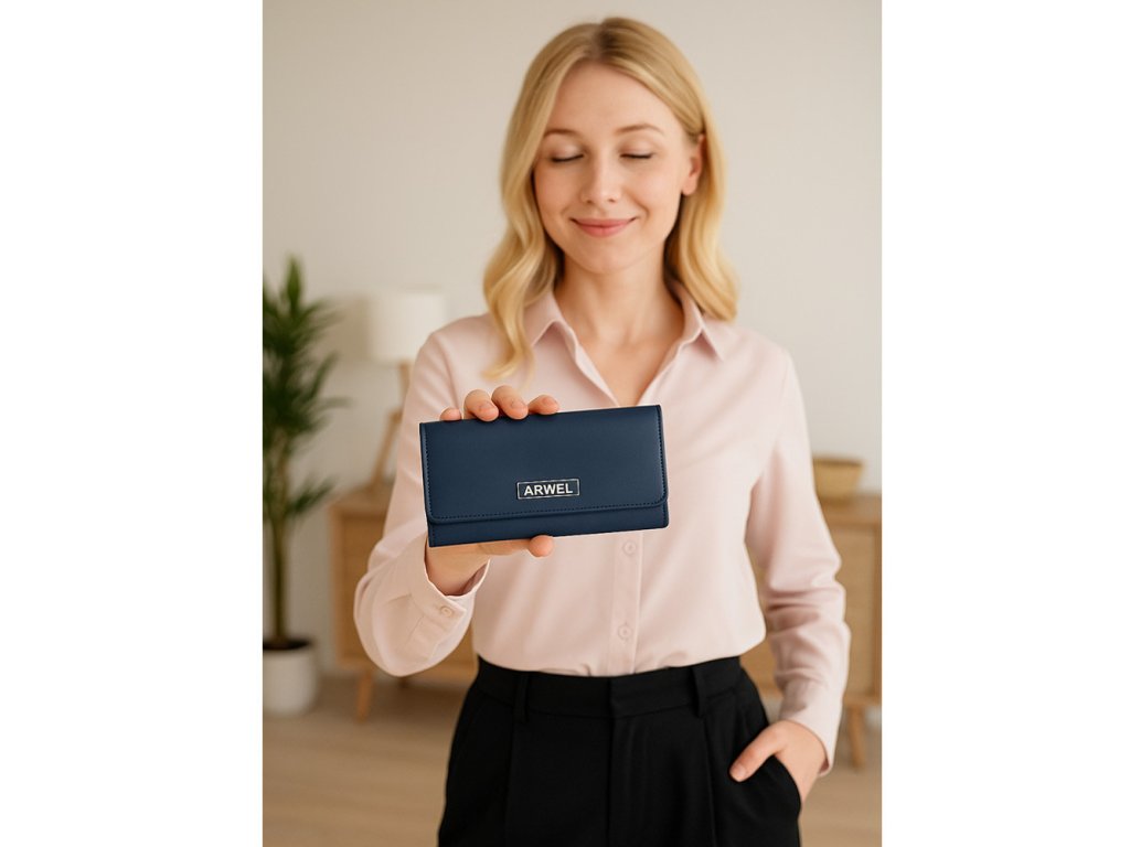 Tmavě modrá kožená dámská klopová peněženka 511-1048-97