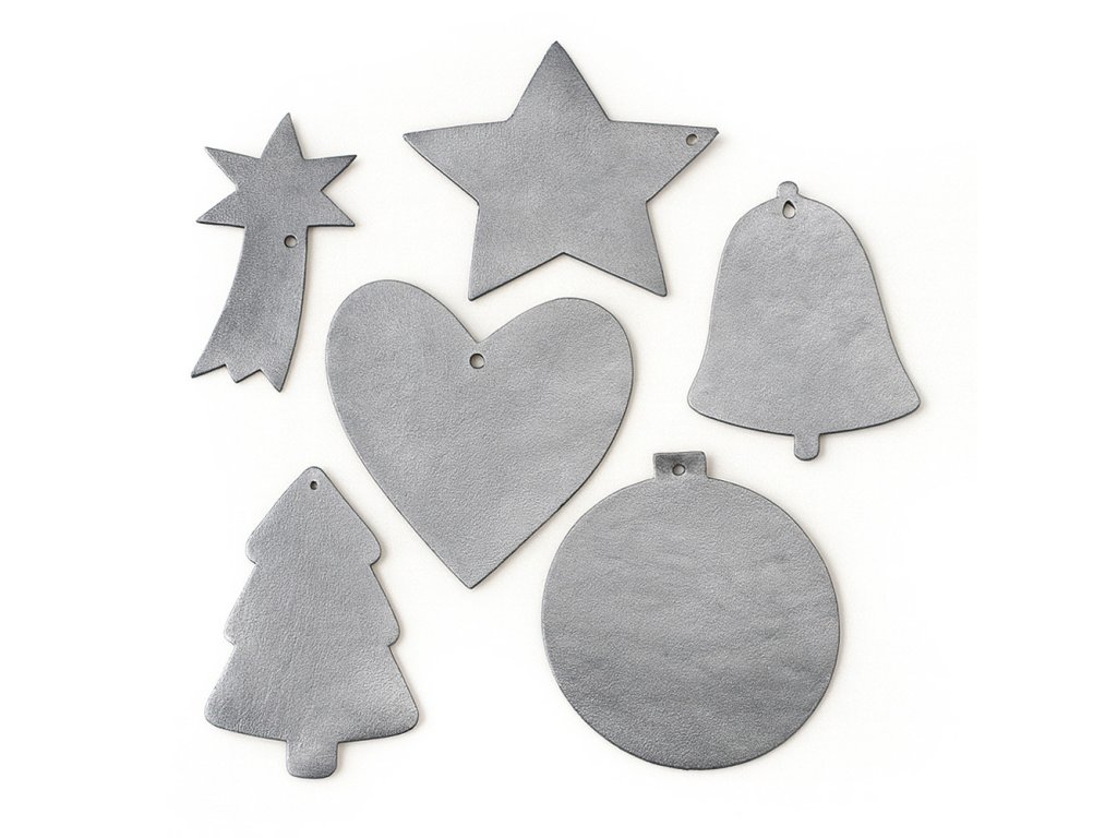 Tmavě stříbrná sada kožených vánočních ozdob 412-1310-29