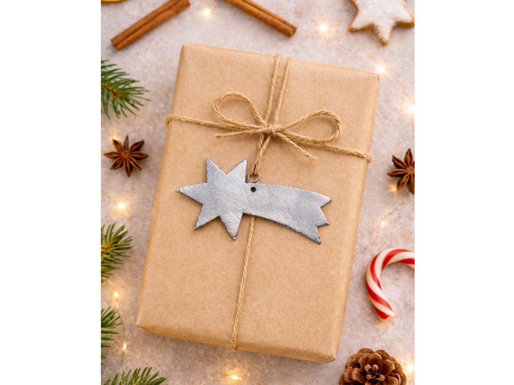Kometa z pravé kůže je ideální jako ozdoba na vánoční stromeček i jako originální visačka na dárky.