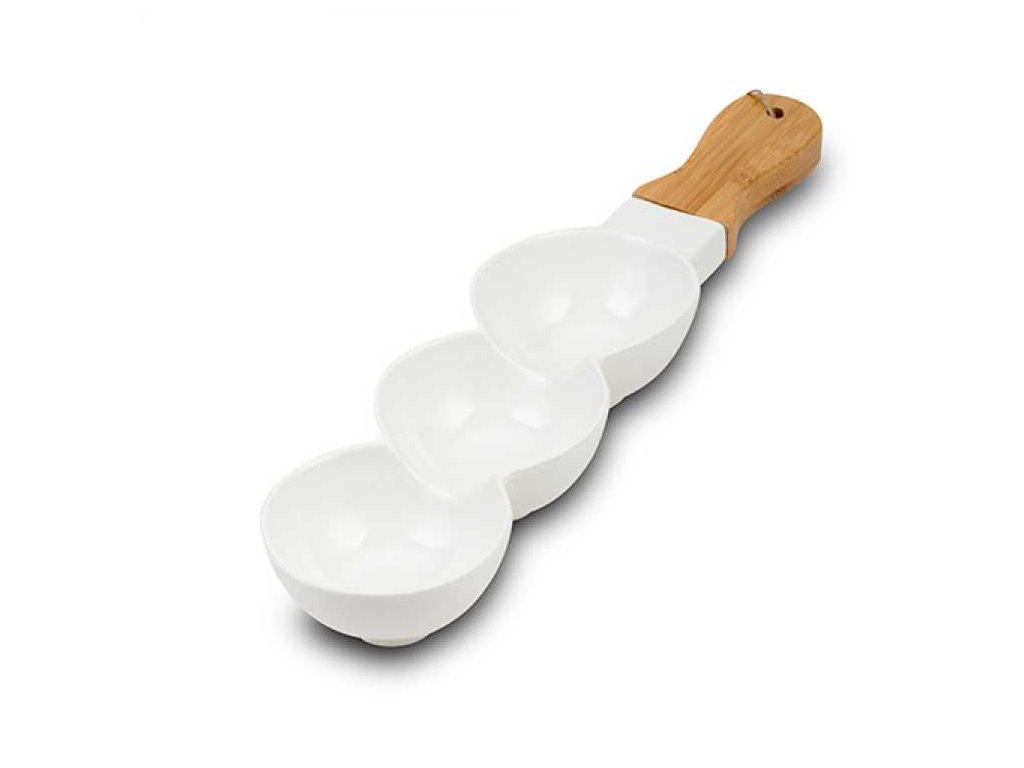 Třídílná porcelánová miska na ořechy NAVA s bambusovou rukojetí 41cm