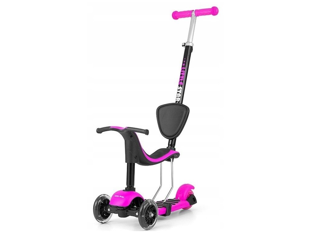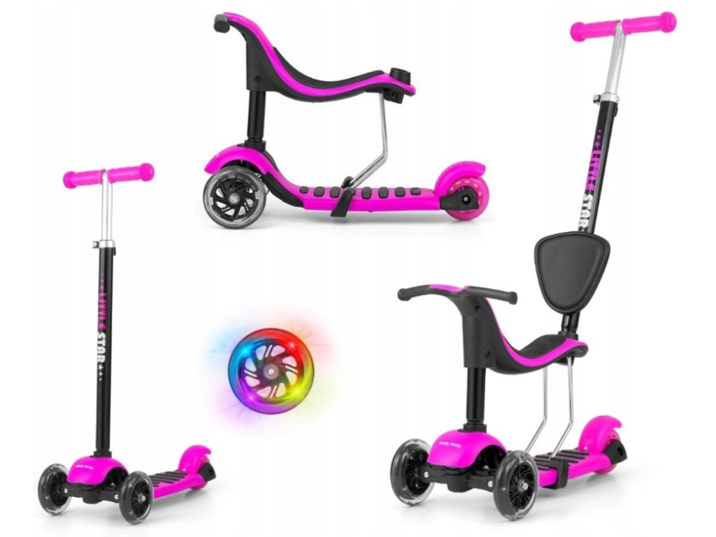 Tříkolka, koloběžka Milly Mally, Scooter Little Star 3 v 1 - růžová