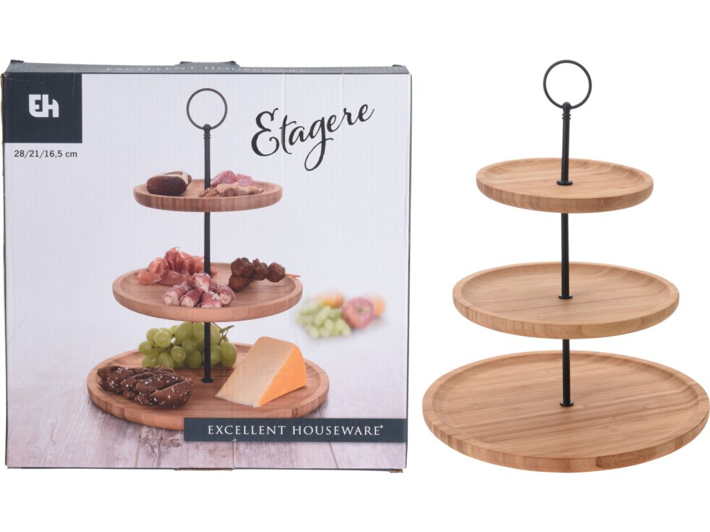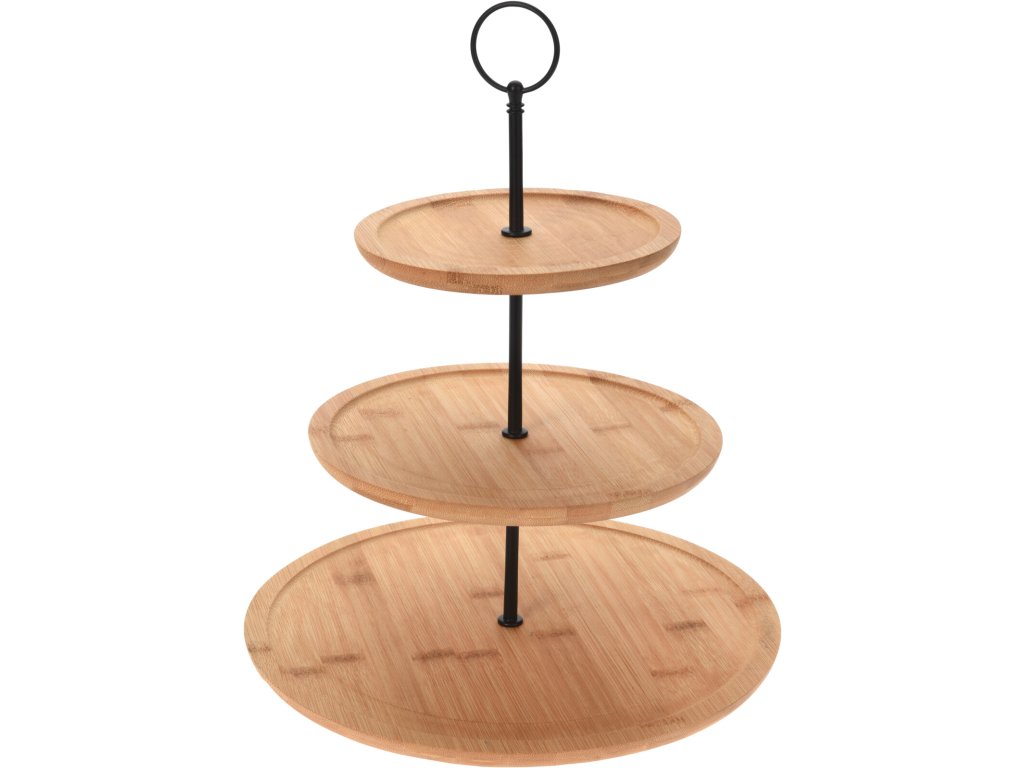 Výborný pomocník při servírování je tento třípatrový stojan. Malé jednohubky, sýry nebo drobné zákusky a koláče můžete svým hostům přinést najednou na tomto stojanu. Kombinace kovu a bambusového dřeva vypadá skvěle. Průměry talířů - 28 cm, 21 cm a 16,5 cm.