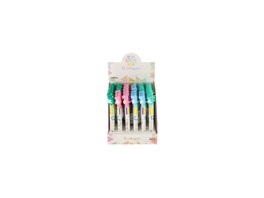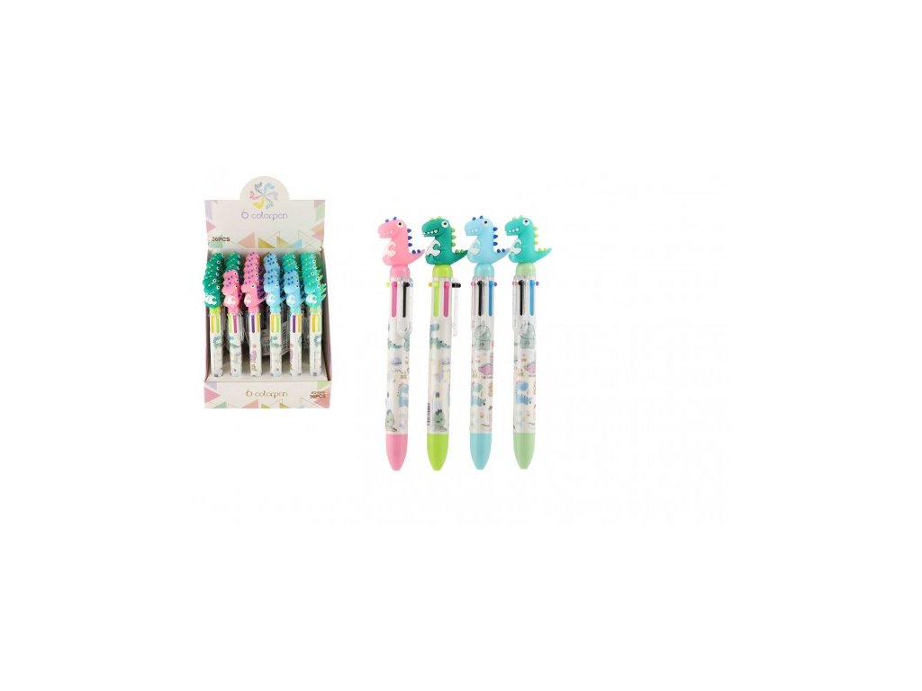 Tužka/pero dinosaurus šest barev plast 17cm 4 barvy 36ks v boxu